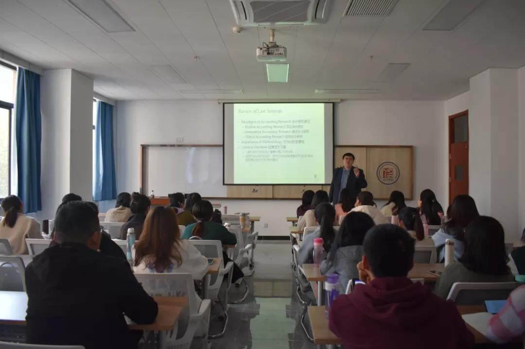 11月13日下午,黄泰然博士在燕山校区逸夫楼Y307教室围绕“会计研究课程扩展”这一主题与同学们进行了学术交流。2019级全体会计学硕及部分会计专硕学生到场聆听。