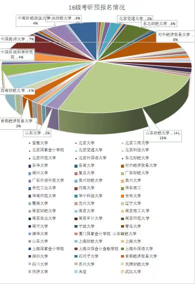11月份,针对学院考研学生基数大、报考集中等问题,在研究生预报名结束之后,学院就及时采集了全院本科毕业生研究生报考院校和专业等情况的详尽数据统计,并做了细致地分析工作,以图表等直观的形式为学生正式报考提供第一手的数据参考,让同学们避免集中报考,从而尽可能帮助同学们做出合适的选择。