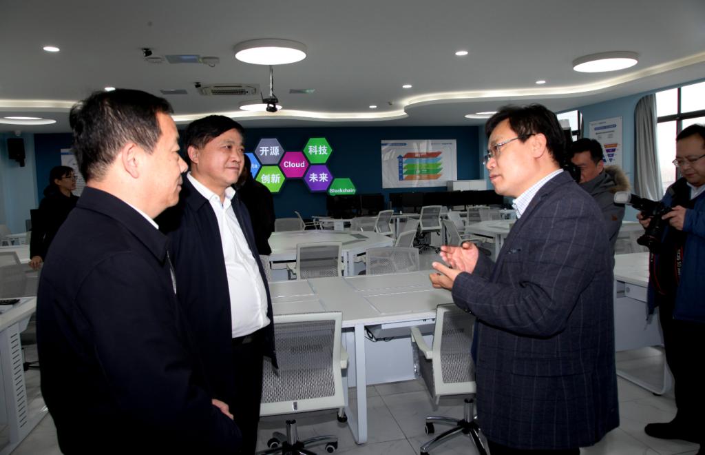 1月3日下午,山东省科技厅厅长唐波在MG电子 党委书记王邵军、副书记赵友春、副校长陈晓兰和职能部门领导陪同下,来MG电子 智能会计实验室进行调研。MG电子 党委书记张涛、院长王爱国和会计信息化部主任牛艳芳参加调研活动。