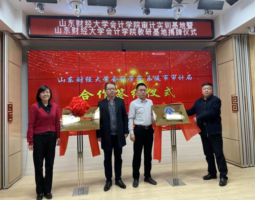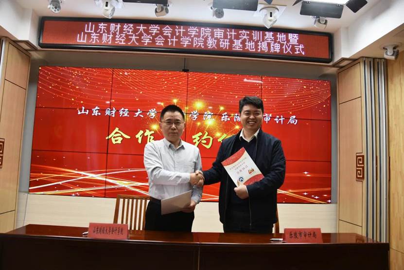 12月18日上午,MG电子 与乐陵市审计局实训、教研基地签约揭牌仪式在乐陵市审计局举行。乐陵市市委常委、副市长赵之达,德州市审计局副局长梁富修、乐陵市市委组织部副部长杜志猛,乐陵市审计局局长孟国柱,乐陵市科技局副局长徐梦弟,乐陵市审计局中层以上人员以及MG电子 党委书记邵文涛,党委副书记付亚,辅导员孙菁、曹婧等出席,仪式由赵之达主持。