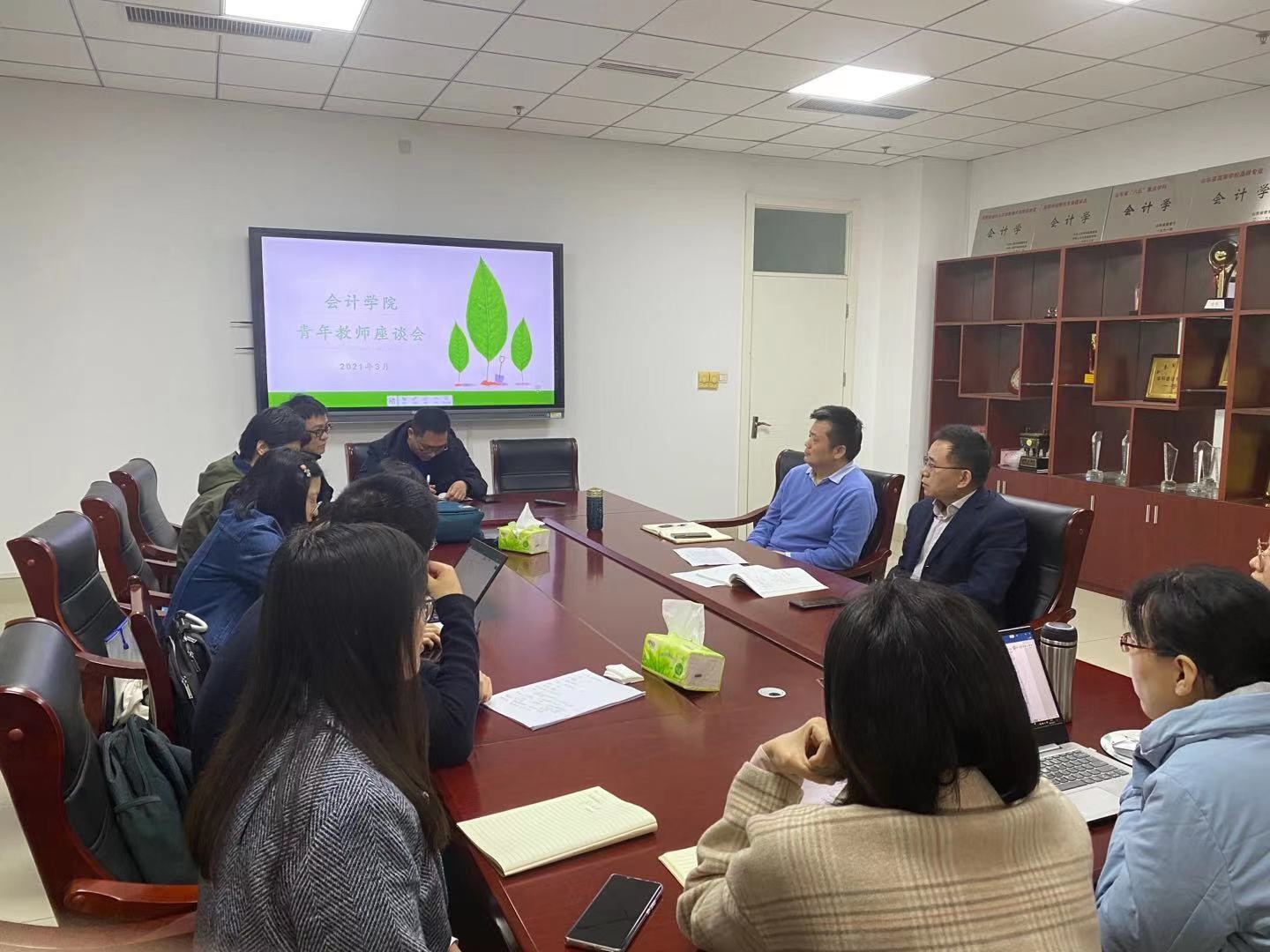 2021年3月11日,MG电子 在逸夫楼举办青年教师座谈会,学院党委书记邵文涛,副院长、Mpacc中心主任朱德胜出席会议。