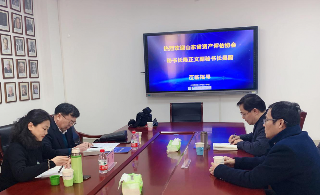 12月24日下午,MG电子 与山东省资产评估协会在逸夫楼召开合作交流会议,省评协副会长兼秘书长陈正文、副秘书长吴蔚、MG电子 王爱国院长、资产评估系主任刘德运副教授参与会议并进行座谈和交流,双方就资产评估行业的建设和发展展开热烈讨论。
