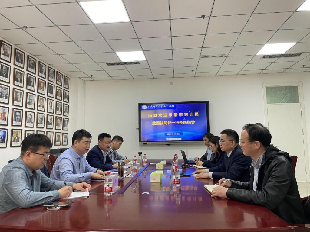 孟国柱介绍了乐陵市审计局近期开展的主要业务和重点工作,结合具体案例分析了在当前形式下地方审计工作遇到难题和困惑,希望借助高校在教学科研、人才师资等方面的优势,从教育培训、科研课题、岗位实习等方面与学院开展互动良好、持续有效的交流与合作。