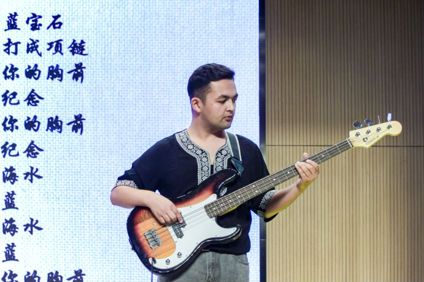 晚会在维吾尔族乐队带来的歌曲《蓝宝石》中拉开帷幕,灯光洒落,他们手持特色乐器,悦耳的歌声伴随着动感的旋律响彻全场。“我将蓝宝石做成项链,将它挂在你的胸前,替我陪在你的身边”,现场气氛逐渐被点燃。民族团结、血浓于水的骨肉情深在晚会“寒木春华”、“珠辉玉映”、“声磐同音”三个篇章的递展进程中,充盈于每位观众的心扉。
