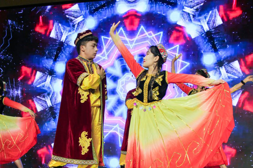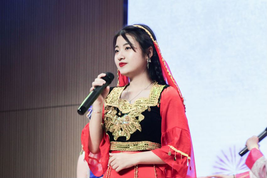 为喜迎中国共产党成立100周年,进一步铸牢中华民族共同体意识和民族团结意识,强化各民族学生一颗红心永向党、坚如磐石跟党走的坚定信念,6月6日晚18点30分,由校学生处主办、MG电子 承办的“同心共远航,筑梦谱华章”民族文化晚会在圣井校区文体活动中心报告厅精彩上演。新疆驻山东工作组老师,学校校学生处处长王剑老师、玛黑拉老师、热西旦老师,MG电子 党委副书记付亚老师、学工办主任赵鸿雁老师、辅导员张沫老师以及来自圣井校区各学院学生代表参加了此次晚会。晚会由20级同学常亚轩、于思淼、尹静妍、开赛尔主持。