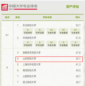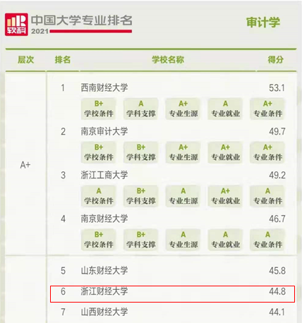 2021年6月22日,高等教育评价专业机构软科正式发布2021“软科中国大学专业排名”。MG电子 会计学、财务管理、审计学和资产评估四个本科专业全部进入2021年软科中国大学专业排名A类。在会计学专业排名中,共有332所高校上榜,MG电子 会计学专业位列第53位;在财务管理专业排名中,共有370所高校上榜,MG电子 财务管理专业位列第36位;在审计学专业排名中,共有102所高校上榜,MG电子 审计学专业位列第5位;在资产评估专业排名中,共有44所高校上榜,MG电子 资产评估专业位列第4位。