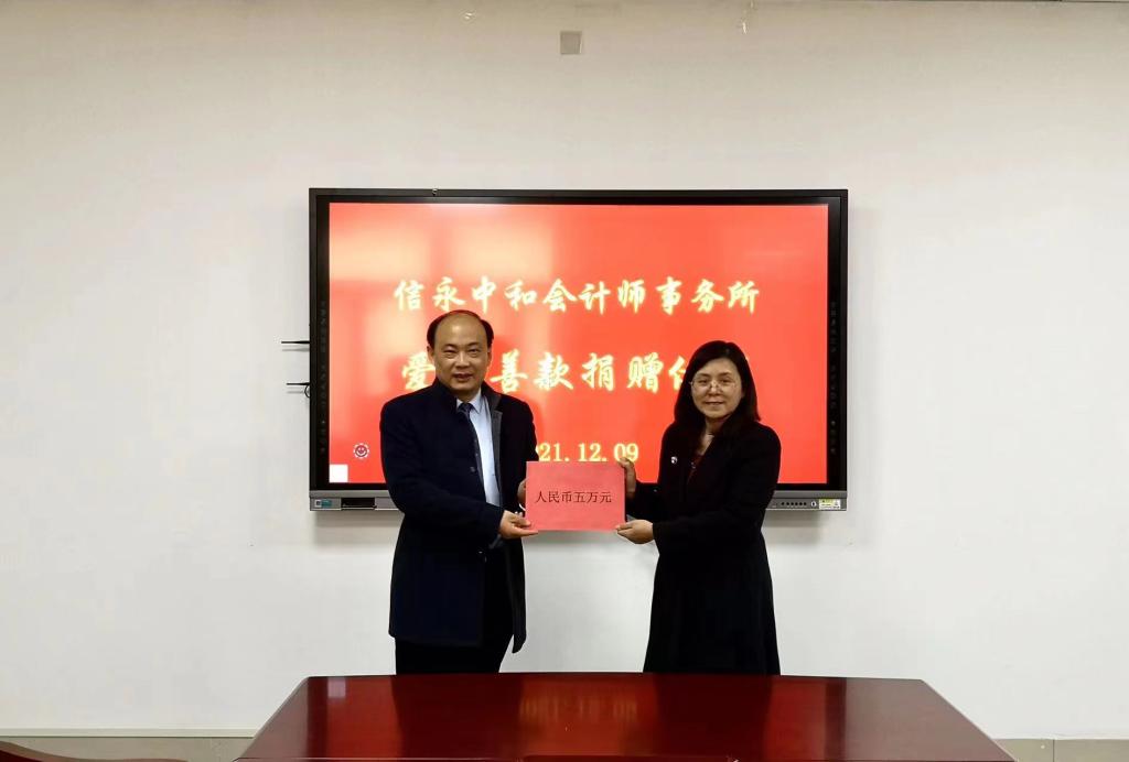 12月9日,信永中和会计师事务所合伙人王兆勇,行政总监王长勇,人力资源部经理赵秀丽来到学院为MG电子 穆京同学送来了五万元人民币的爱心的捐款。学院党委书记邵文涛、副书记付亚,院长助理韩跃老师参加了捐赠仪式。