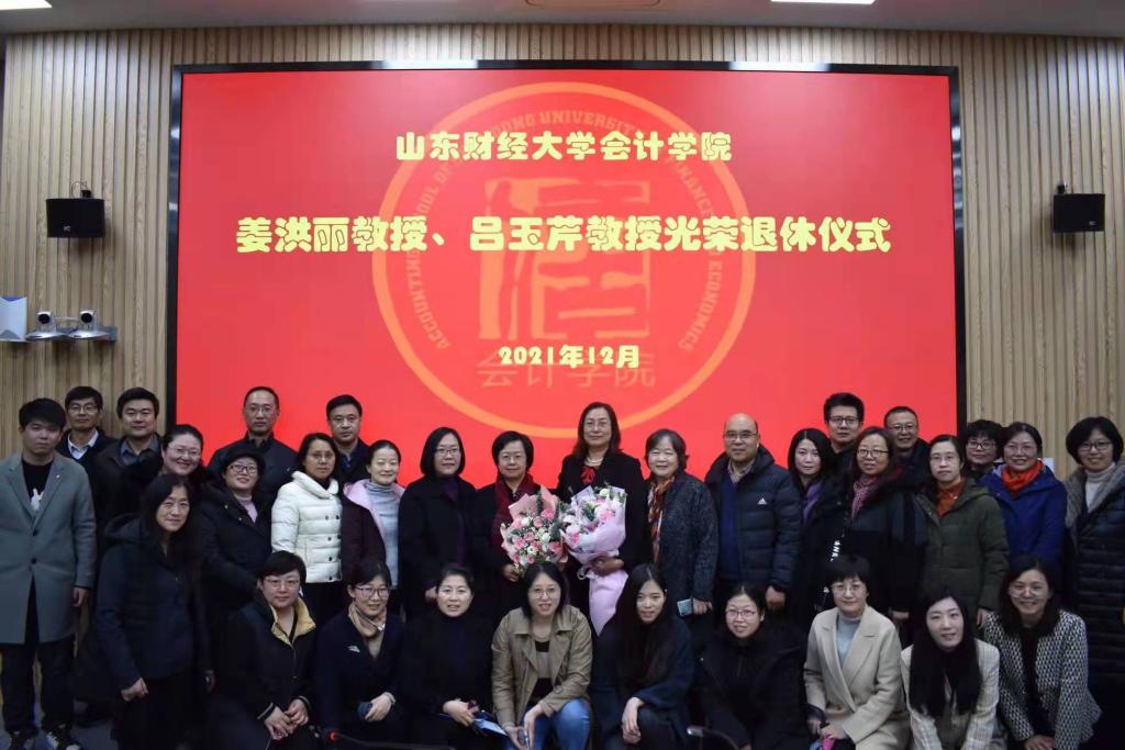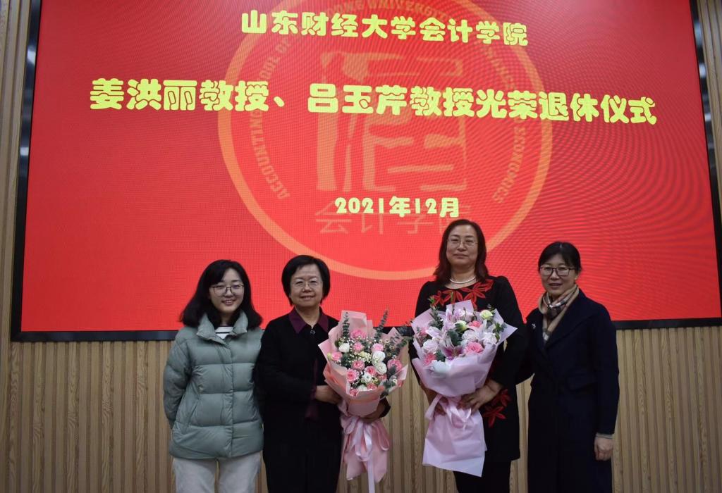 春风化雨四十载,五洲桃李叶成荫。12月17日下午,学院在逸夫楼103室为姜洪丽、吕玉芹两位教授举行荣休仪式,党委书记邵文涛,MPACC中心主任兼副院长朱德胜,党委副书记付亚,副院长孙文刚、王守海,党委副书记钟毓卓及MG电子 全体教师参加,仪式由邵文涛书记主持。