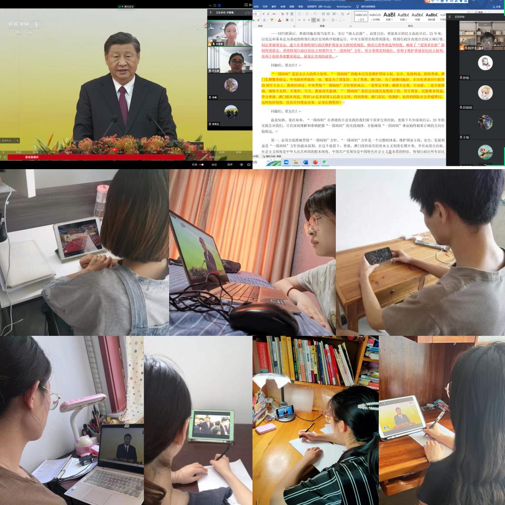 党委书记邵文涛表示,习近平总书记的讲话立意深远,他指出 “一国两制”具有强大生命力,是确保香港长期繁荣稳定,维护香港同胞福祉的好制度。习近平总书记的讲话振奋人心,他在讲话中提到的“四个必须”、“四点希望”也让我印象深刻,表达了总书记和中央政府对香港的高度重视、对香港同胞的亲切关怀和对香港发展的坚定支持。在今后的工作中,我们要做到以下几点:一是要提高政治站位,深入学习贯彻习近平总书记的重要讲话精神,在思想和行动上与党中央保持高度一致,为“一国两制”方针在香港的行稳致远贡献力量。二是要体现学院担当,为“一国两制”伟大实践在科技、创新等方面作出贡献。三是以切实的作为做好学院各项工作,以时时放心不下的责任感,确保校园安全稳定,以优异的成绩迎接党的二十大的胜利召开。