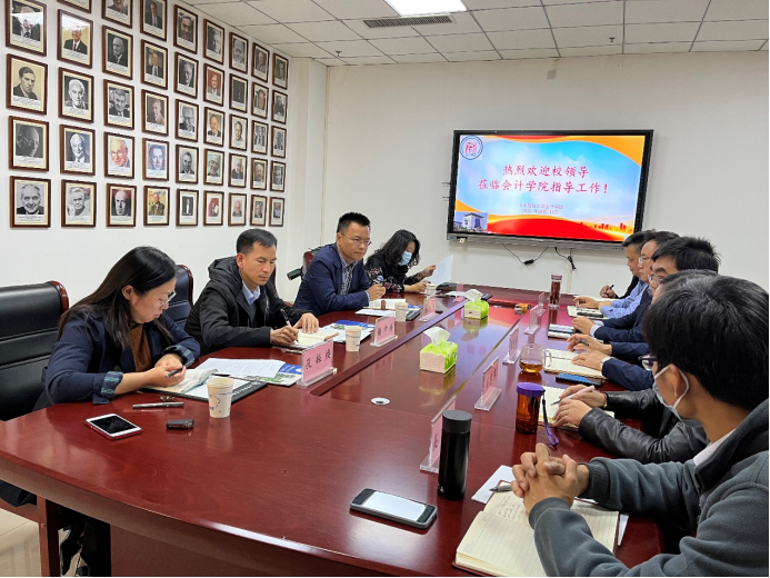 10月11日下午,校党委委员、副校长谢申祥来MG电子 调研指导科研工作;科研处处长马恩涛,副处长于楠楠、孔振焕陪同调研。MG电子 党委书记邵文涛、院长葛永波、MPAcc中心主任朱德胜、副主任罗怀敬、学院副院长吴大新、刘惠萍参加座谈。