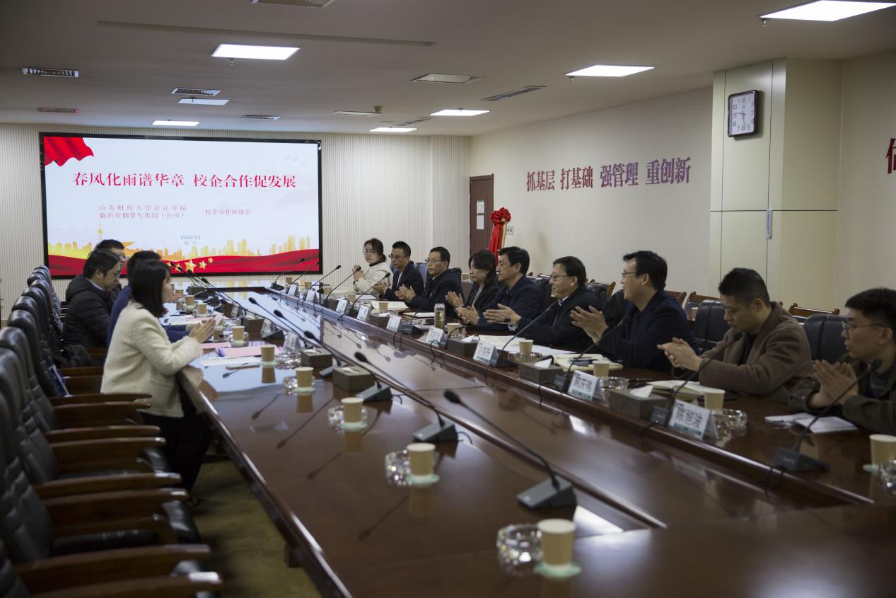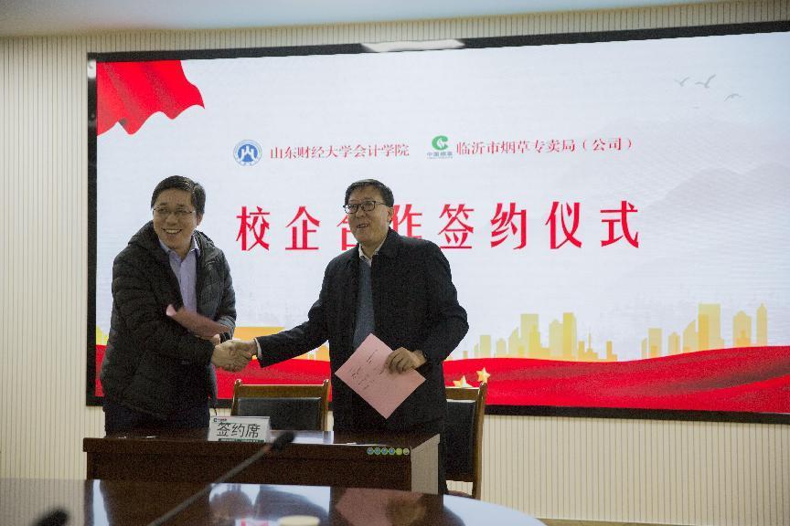 3月17日,MG电子 、临沂市烟草专卖局(公司)合作框架协议签约暨高端会计人才培养与创新创业(就业)实习基地挂牌仪式在临沂市烟草专卖局(公司)成功举行。MG电子 党委书记邵文涛、院长助理韩跃、就业办主任孙菁、辅导员郭超,临沂市烟草专卖局(公司)党委委员、副局长关军、办公室主任乔永关,人事科科长王志刚,财务科科长韩跃龙及相关人员出席。仪式由财务科科长韩跃龙主持。