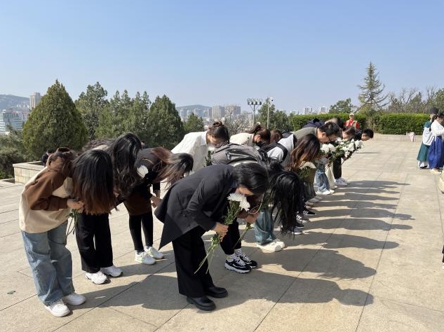 “万众仰高风,哀思祭忠魂。”后续大家来到革命烈士纪念塔缅怀先烈。青年们手捧白菊,神情肃穆,在深鞠三躬后,怀着无比崇敬、激动的心情把寄托无限哀思与缅怀的鲜花献给了我们最可爱、最可敬的革命英雄。