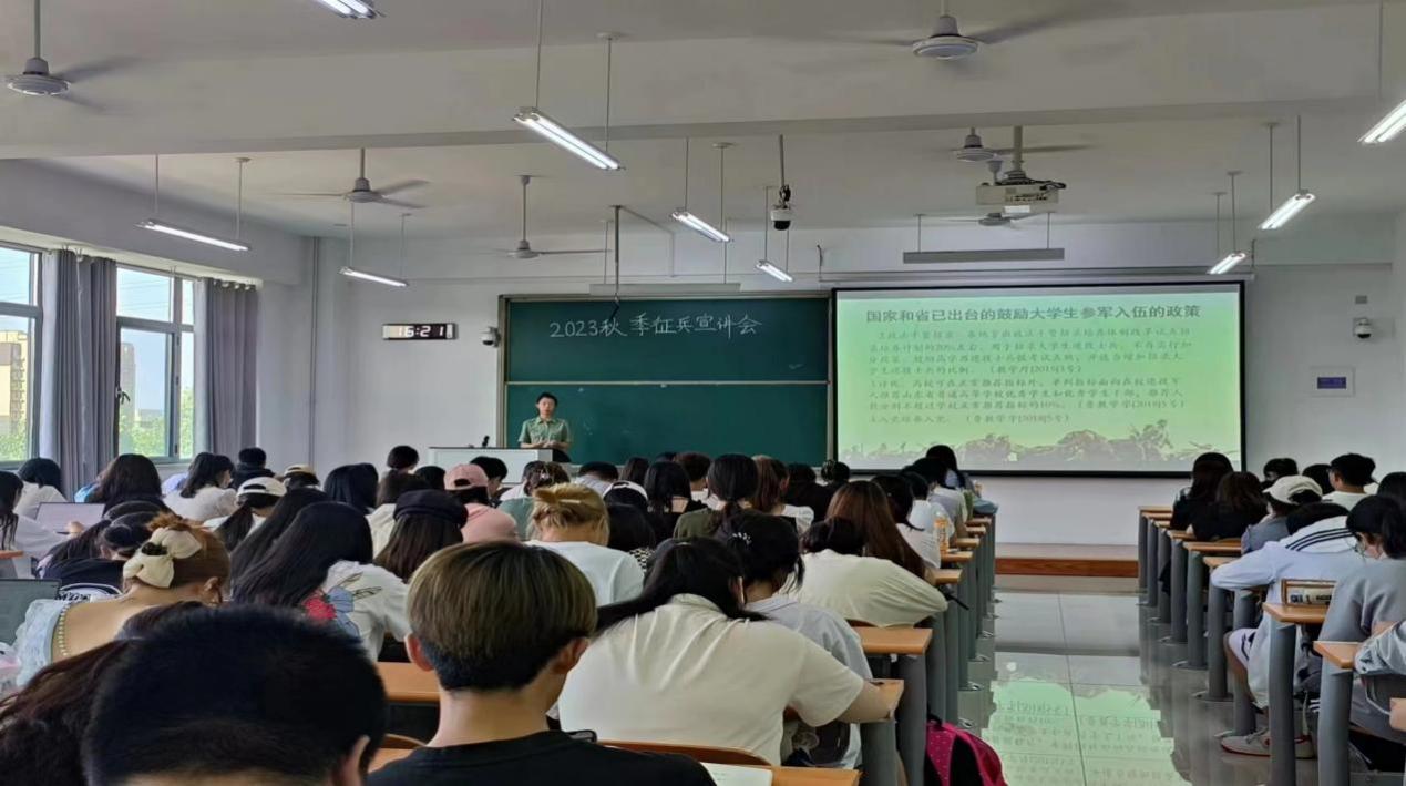 相信同学们能通过此次宣讲会,进一步了解大学生入伍政策,增强对助力强军兴军的责任感。希望同学们志存高远、踔厉奋发、笃行不怠、立马昆仑,积极响应党的号召,肩负起时代重任,携笔从戎壮华夏,持书仗剑耀中华。