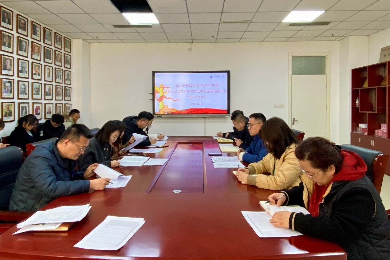 邵文涛指出,2023年,学院师生党员扎实开展学习贯彻习近平新时代中国特色社会主义思想主题教育,学习贯彻党的二十大和二十届二中全会精神,认真贯彻学校党委决策部署要求,积极完成各项工作,立足学科建设成果、专业特色与比较优势,打造“红色会计”特色党建品牌,基层党建工作取得了积极成效。希望全体支部书记继续提升自身政治能力和综合素养,锤炼党性,增强本领,充分发挥党建领航保障和凝心聚力作用,带领全体党员师生团结一心、砥砺奋斗,为学院改革发展提供坚强的政治保证。