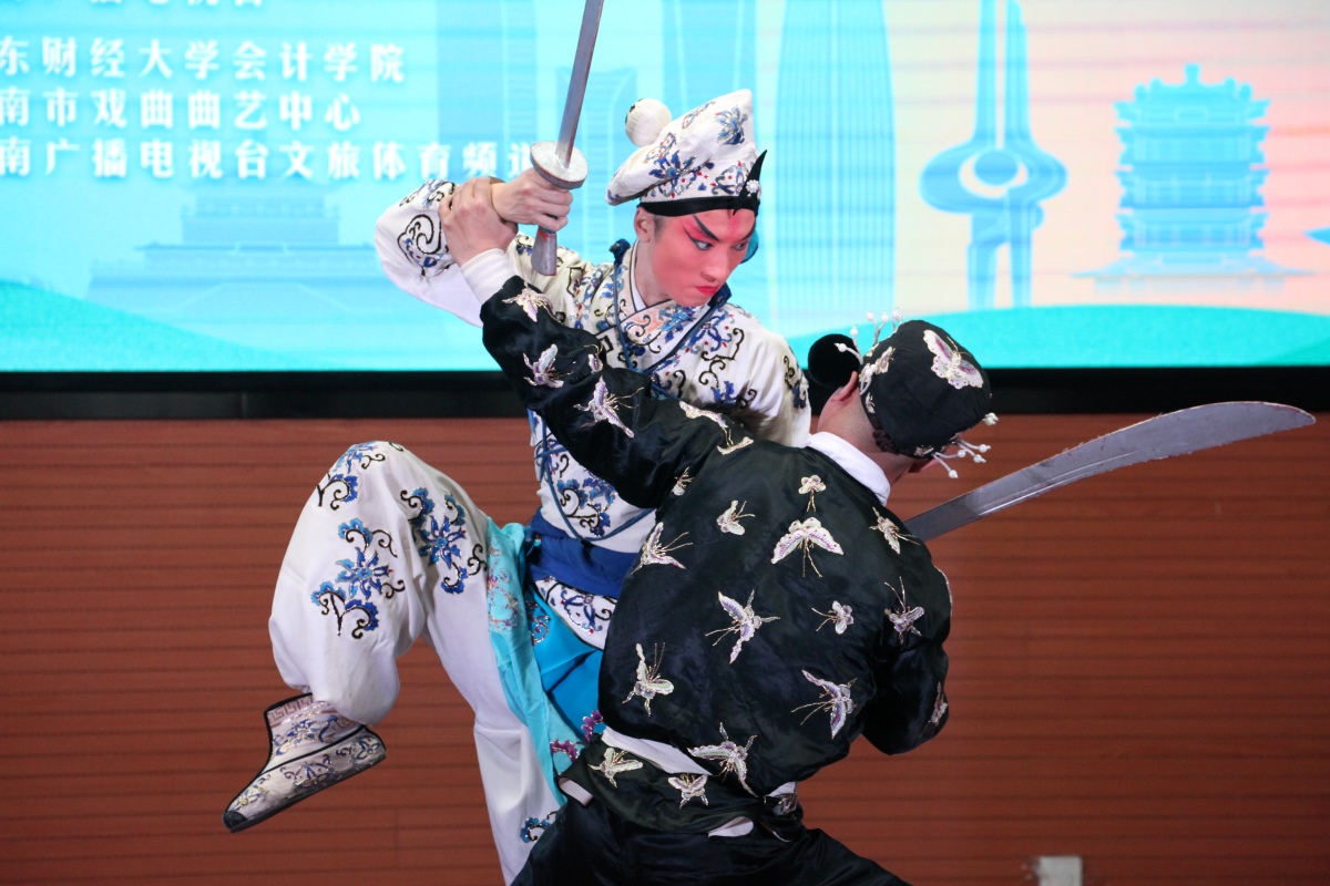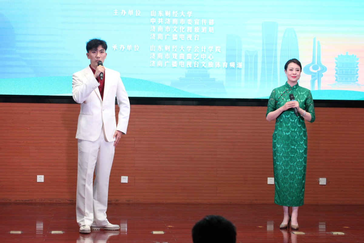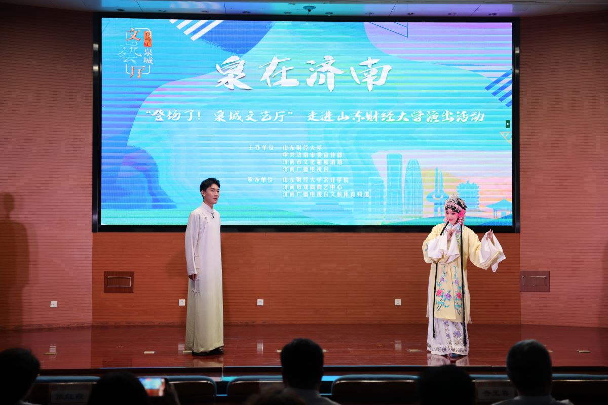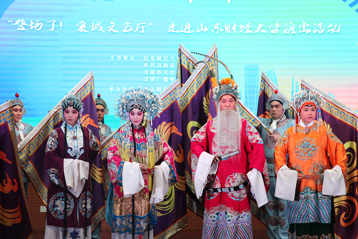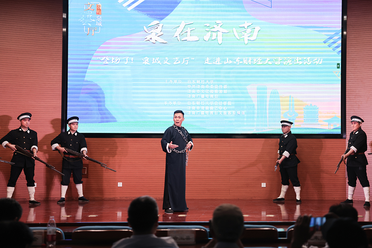 菁菁校园六月相约,高雅艺术精彩纷呈。6月7日下午,由MG电子 、中共济南市委宣传部、济南市文化和旅游局、济南广播电视台主办,我校MG电子 、济南市戏曲曲艺中心、济南广播电视台文旅体育频道承办的 “‘泉’在济南——登场了!泉城文艺厅”走进我校,在燕山校区图书馆第一报告厅举办专场演出,让师生们近距离领略了高雅艺术的无穷魅力。现场高潮迭起,精彩纷呈,震撼心灵。