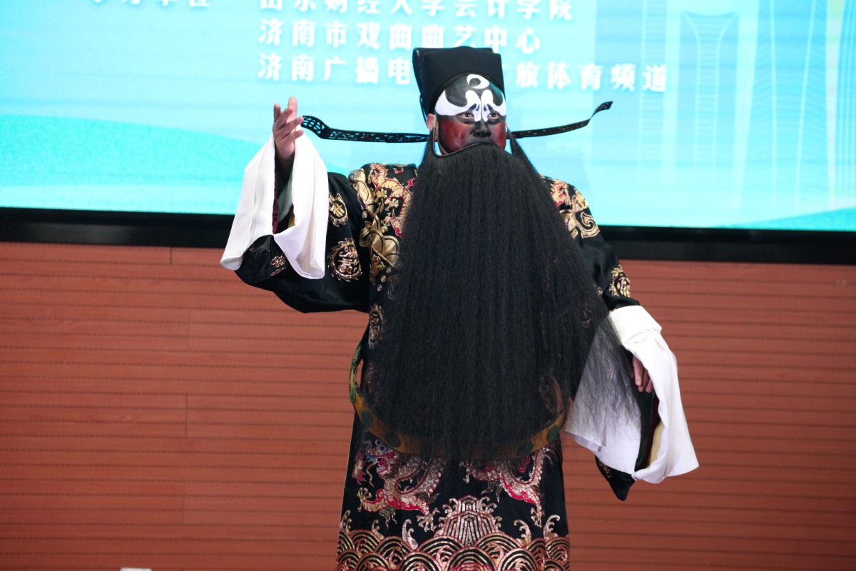 天下泉城合唱团带来的大合唱《泉在济南》和《时间的远方》,歌声悠扬动听,唱出了对济南的热爱和对未来的憧憬。济南市歌舞剧院青年歌唱家韩霞演唱的民歌《涌泉相报》呈现出独特的韵味。京歌《一念一城》为整个演出画上了圆满的句号,余音绕梁,令人回味无穷。“这场演出真的太精彩了!让我对京剧等传统艺术有了更深刻的认识和理解,也让我感受到了艺术的魅力和力量。”MG电子 研究生2023级硕士生张晓飞激动地说。