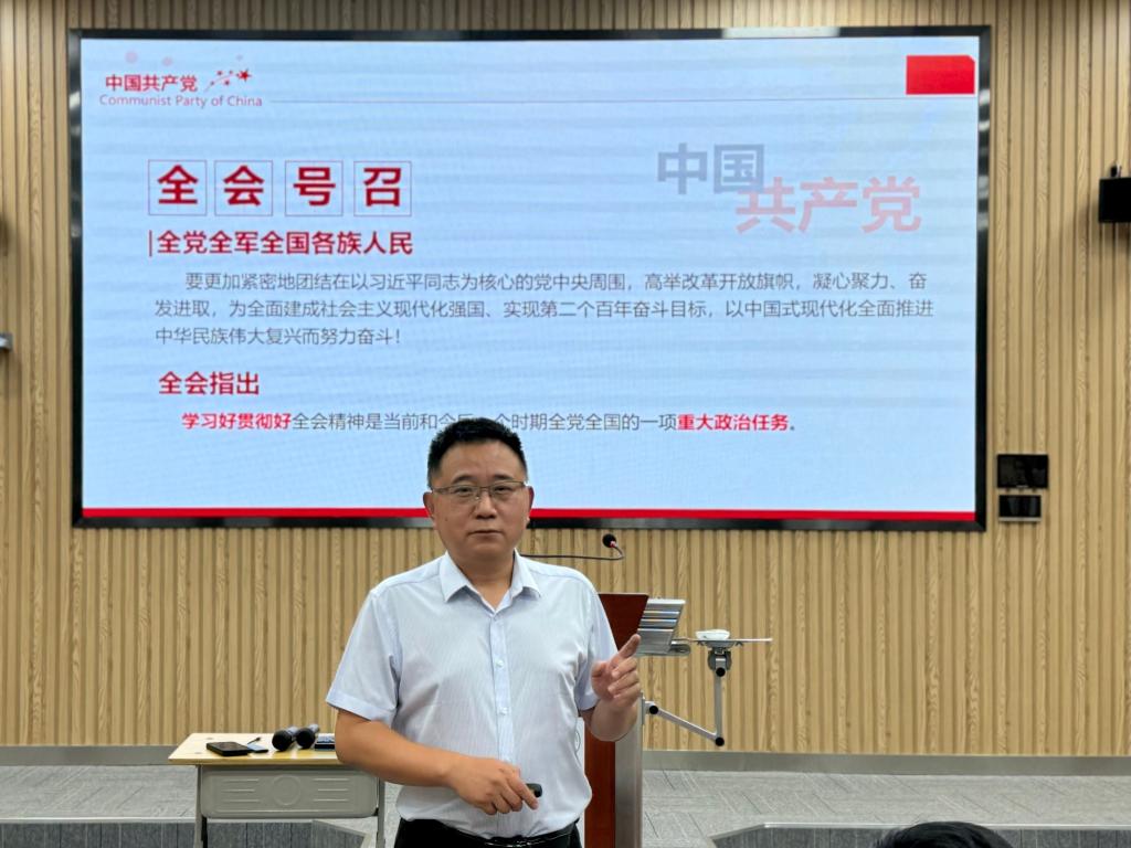 为深入学习贯彻党的二十届三中全会精神,按照学校认真学习宣传贯彻党的二十届三中全会精神的通知要求,进一步统一思想,凝心聚力,9月5日下午,学校宣讲团成员、MG电子 党委书记邵文涛为学院师生党员讲授学习贯彻党的二十届三中全会精神专题党课。