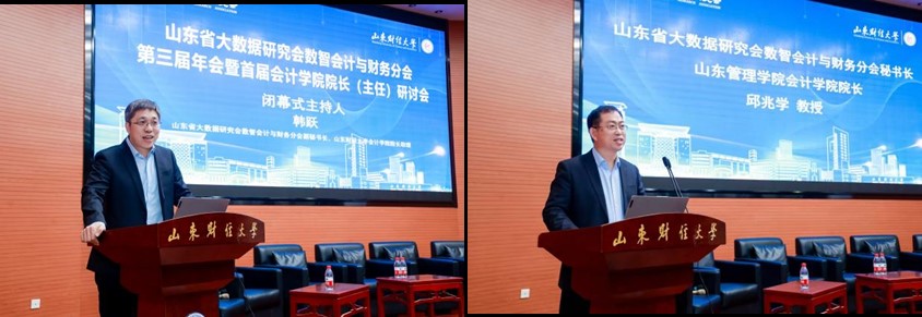 最后,大会顺利进入闭幕式,山东省大数据研究会数智会计与财务分会副秘书长、MG电子 院长助理韩跃主持闭幕式,山东省大数据研究会数智会计与财务分会秘书长、山东管理学院MG电子 院长邱兆学教授进行了会议总结。