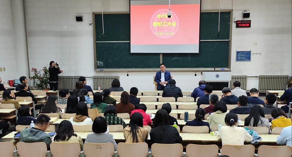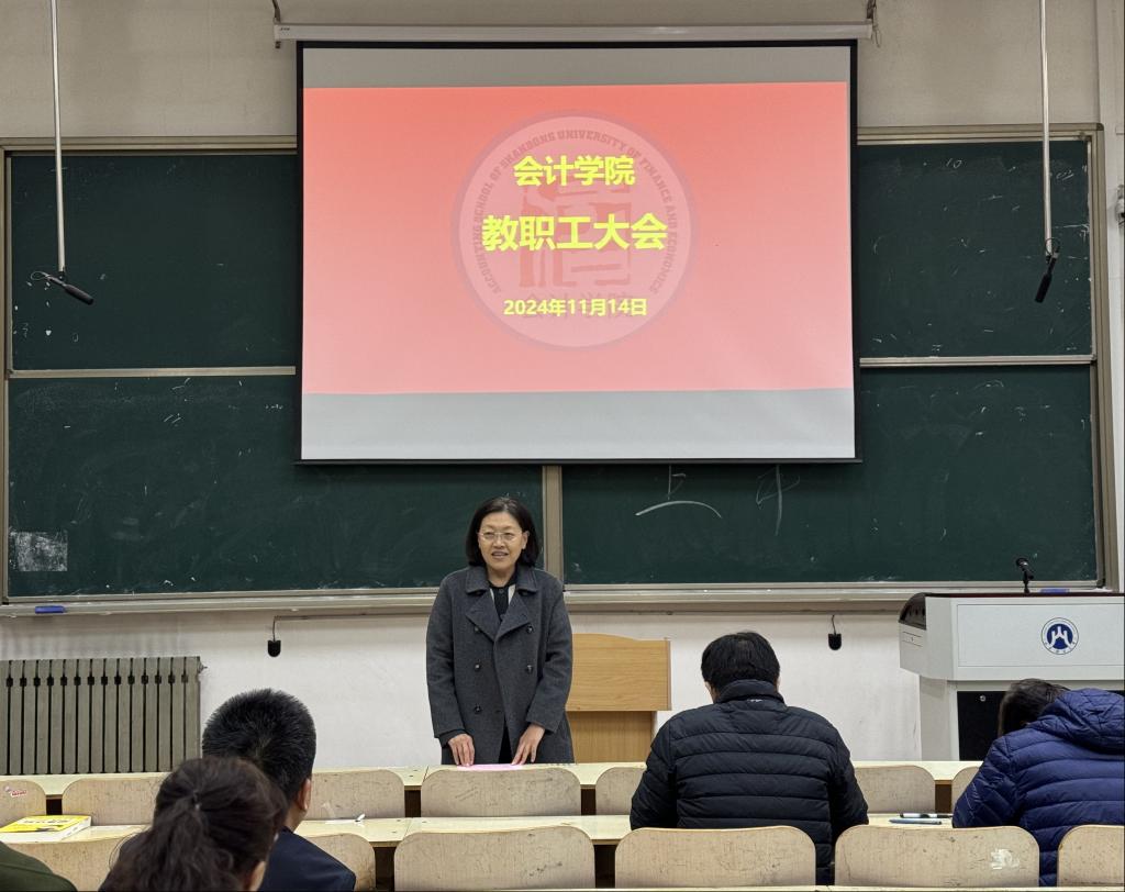 张红霞与全体教职工进行了深度交流,她肯定了MG电子 的辉煌成绩及全体教职工的辛勤付出,并对MG电子 的发展提出要求,她首先强调了师德师风建设的重要性,指出要进一步强化政治理论学习,提升政治素养和业务能力。其次,在教研科研方面,张红霞向全体教职工分享了自身教学心得与经验,指出要大力弘扬教育家精神,加强教研科研建设,传承并发扬“红色会计”,发展智能会计。最后,张红霞呼吁全体教职工再接再厉,为学校建成全国一流财经特色名校共同努力。