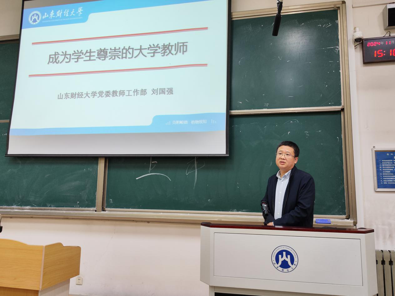刘国强以“成为学生尊崇的大学教师”为题,从意识形态方面斗争的需要、时代的进步和教师个体的职业道德三方面,结合相关案例,带领全体教职工学习了新时代高校教师职业行为的十项准则,帮助全体教职工筑牢师德师风底线。