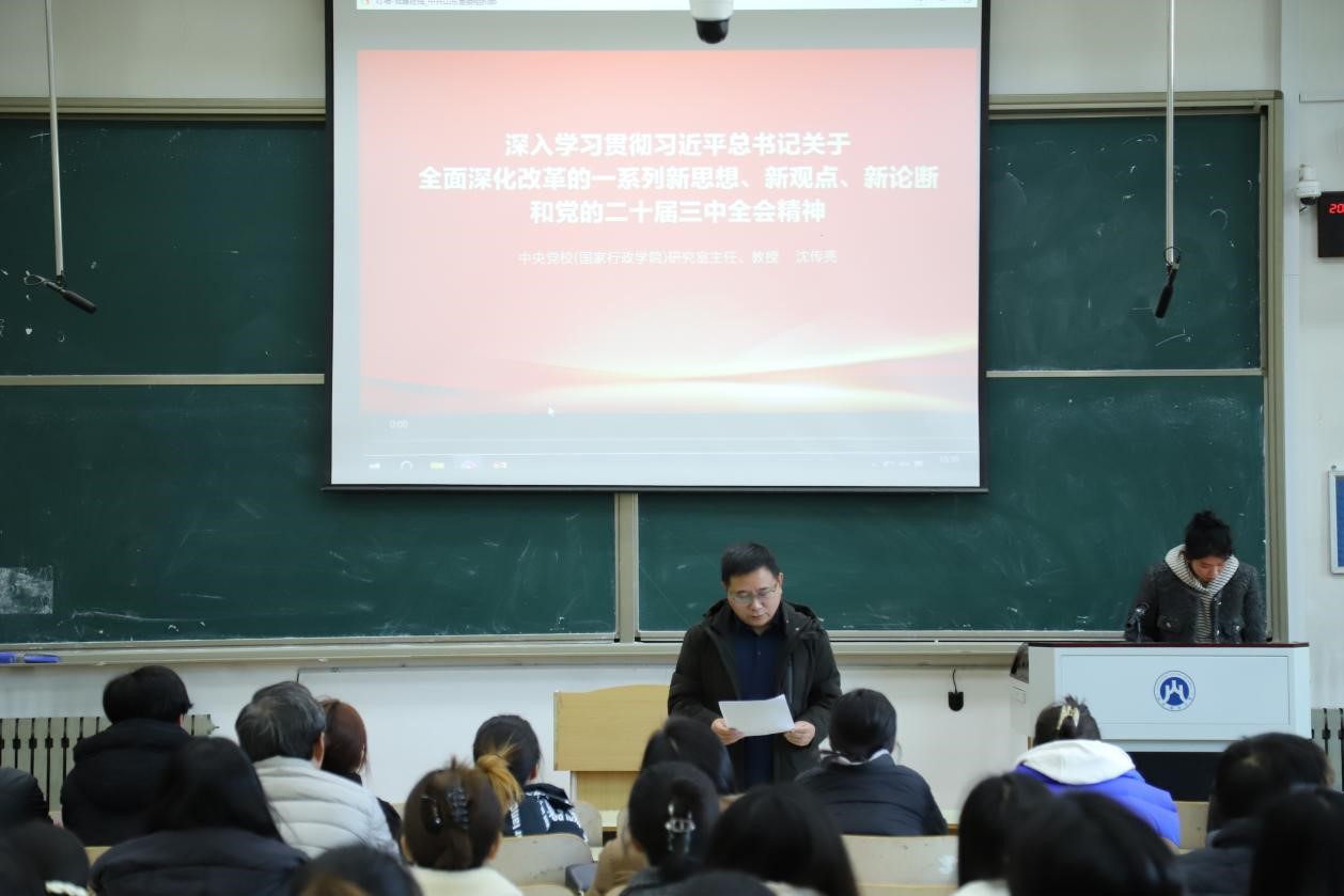 随后,邵文涛传达学校《关于开展科级及以下干部、党员学习贯彻党的二十届三中全会精神培训的通知》精神,按照《MG电子 关于开展学习贯彻党的二十届三中全会精神培训工作方案》,邵文涛带领科级及以下干部、党员深入学习习近平总书记关于全面深化改革的一系列新思想、新观点、新论断和党的二十届三中全会精神,并集体观看了教学视频。他强调要深刻领会党的二十届三中全会精神,把握习近平法治思想的核心要义、丰富内涵和实践要求,切实把科学思想转化为法治建设的实际成效,不断应用到教学科研和日常生活中,形成学习贯彻习近平法治思想的浓厚氛围,努力推动习近平法治思想深入人心。