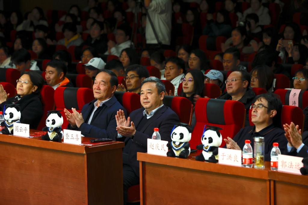 校党政办公室主任鲁天鑫,党委学生工作部部长杨哲,校团委书记王晓迪,MG电子 党委书记邵文涛、院长葛永波,校友、教师代表及2024级400余名学生共同观看了演出。