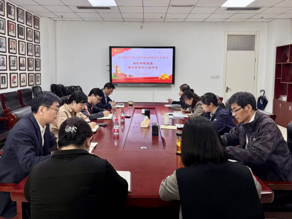 学院党委副书记吕晓燕进行领学。中心组成员深入学习中央八项规定及《教育强国建设规划纲要(2024-2035年)》,并逐一进行交流发言。大家一致认为,开展深入贯彻中央八项规定精神学习教育是巩固深化主题教育和党纪学习教育成果、纵深推进全面从严治党的重要举措,是密切党群干群关系、营造风清气正校园生态的重要保障,也是推动学院事业高质量发展的现实需要。学院党委领导班子将充分认识这次学习教育的重要意义,自觉增强责任感和紧迫感,切实把思想和行动统一到党中央决策部署上来,将中央八项规定精神内化于心、外化于行,推动学院学习教育走深走实,以实际行动坚定拥护“两个确立”、坚决做到“两个维护”。