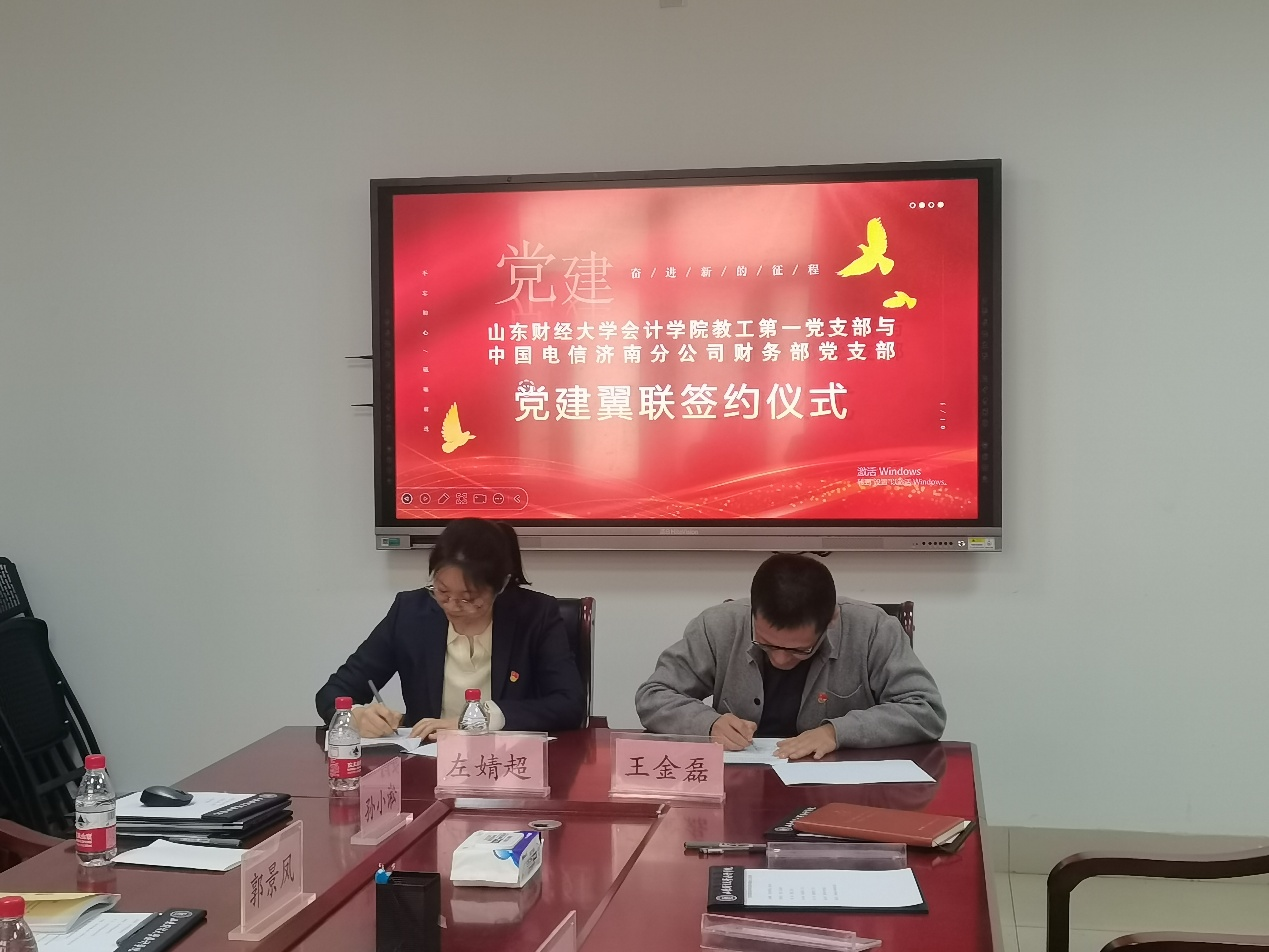在协商一致的前提下,MG电子 教工第一党支部委员会与济南分公司财务部党支部委员会签订了《“党建翼联”合作书》,为推动双方支部共建作出系统规划。双方就支部共建的具体内容进行了深入交流。随后,济南电信财务党支部全体党员共同参观了MG电子 红色会计展览。