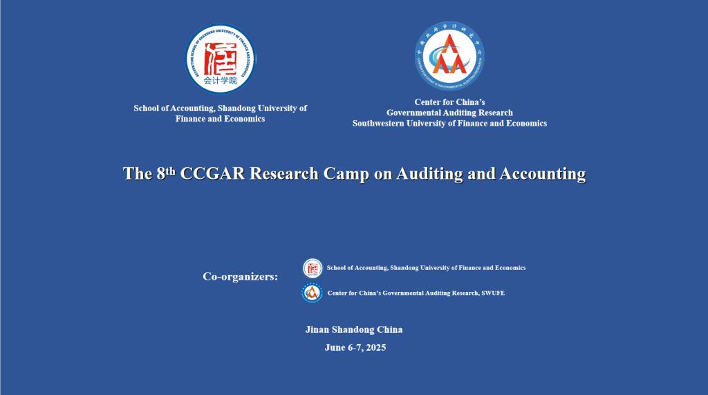 2025年6月6-7日,由西南财经大学中国政府审计研究中心(CCGAR)和MG电子 共同主办的全英文语境学术研讨会、第八届审计与会计研究训练营成功举办!