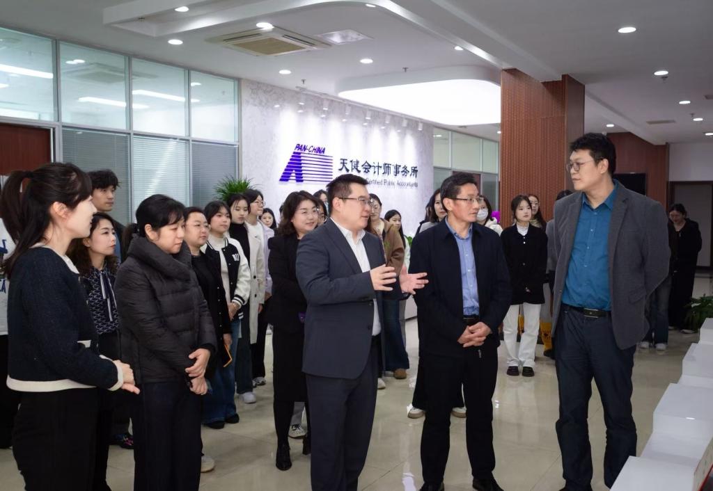 活动伊始,师生一行实地参观事务所两层办公区域,规整有序的办公布局与专业高效的工作场景相得益彰,让学生直观感受到会计师事务所的职业生态,对行业工作场景与业务运转模式建立起具象认知。