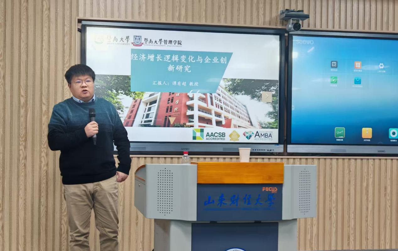 随后,谭有超将话题转向学术研究实践,结合自身多年深耕宏观经济与企业创新领域的研究成果,毫无保留地分享学术经验。通过重点讲解如何紧扣中国宏观经济背景与企业实际经营活动,精准捕捉现实中的核心问题,并通过科学的研究方法将其转化、提炼为具有学术价值的研究议题,谭有超为在场听众提供了兼具理论高度与实操性的方法论指导。