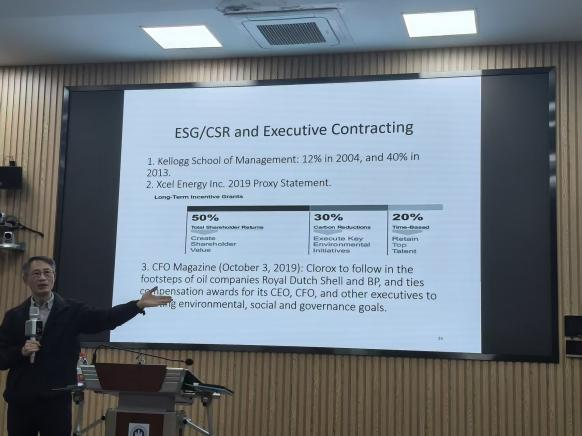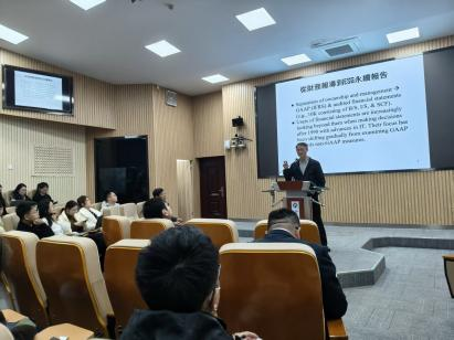 吴大新副院长在开场致辞中对张锡惠教授的到来表示热烈欢迎,并详细介绍了张锡惠教授的学术背景与研究成就。张锡惠现任 Drexel 大学 KPMG 讲座教授。在加入 Drexel 大学之前,他曾在德克萨斯大学达拉斯分校和国立政治大学任教。他毕业于美国明尼苏达大学,获得会计博士学位。他的研究兴趣主要包括审计、管理会计和信息技术,并已在高质量的国际学术期刊上发表了80 余篇论文,其中包括《The Accounting Review》、《Contemporary Accounting Research》、《Journal of Accounting & Economics》、《Management Science》和《Production and Operations Management》。他曾在日本一桥大学、香港城市大学、北京大学、中兴大学和台湾大学担任荣誉讲座教授或客座教授,并拥有多年为营利组织和非营利组织提供咨询的经验。他曾任北美华人会计教授会主席,与国内多位长江学者级别的学者有过合作经历。吴大新副院长强调,随着全球可持续发展理念的深入推进,ESG已成为企业价值评估、投资决策和风险管理的重要考量因素,此次讲座旨在帮助师生把握从传统财务报告到ESG报告的转型趋势,拓宽学术研究视野,提升专业实践能力,为未来学术探索和职业发展奠定坚实基础。