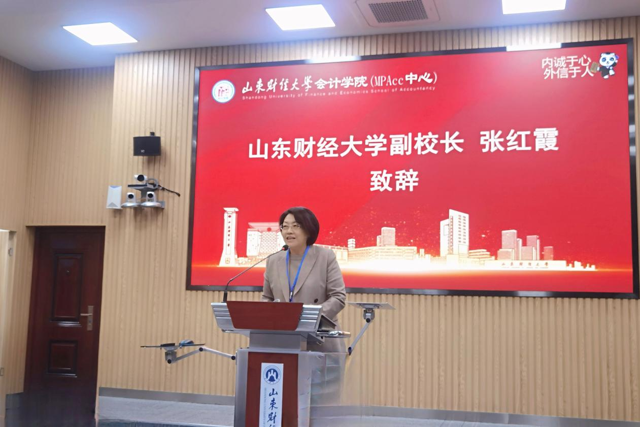 山东山审会计师事务所有限公司董事长郭法远作为校友代表发言。他深情回顾了自己在母校求学的经历,他表示,正是学校深厚的办学底蕴与创新的教学模式,为其奠定了扎实的专业根基与开阔的行业视野,使其逐步成长为今日勇于探索、追求卓越的业界实践者与开拓者。他深切感念母校的培育之恩,郑重表达了将继续秉持山财精神,为学校、学院的高质量发展贡献智慧与力量的坚定决心。