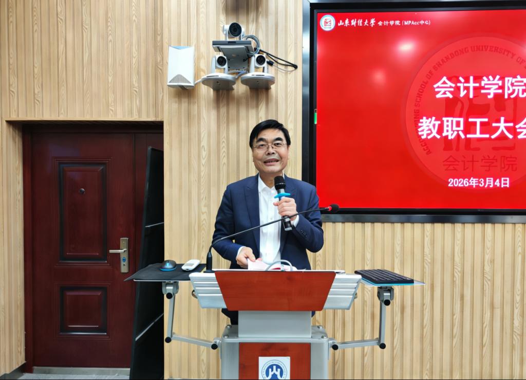 院长葛永波指出,上个学期学院在学科专业深化发展、教学与科研成果持续产出、社会服务、人才队伍建设等方面取得了不错的成绩,离不开各位教职工的辛勤付出。他对新学期学院工作提出了四点要求:一是要进一步提高教学质量,确保新学期教学秩序平稳有序;二是要持续推进学位点建设,高质量完成会计专业博士申报,实现学院办学层次实质性突破;三是进一步强化科研工作,着力补短板、锻造长板;四是要积极推进国际国内权威认证,提升学科影响力和规范化水平。