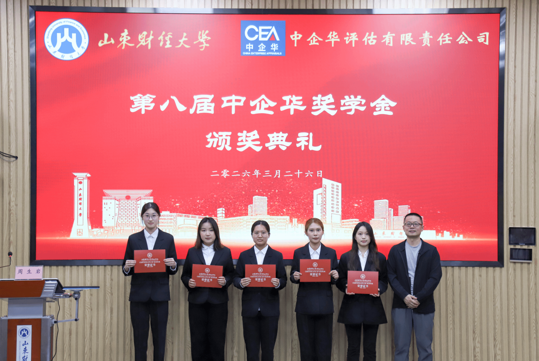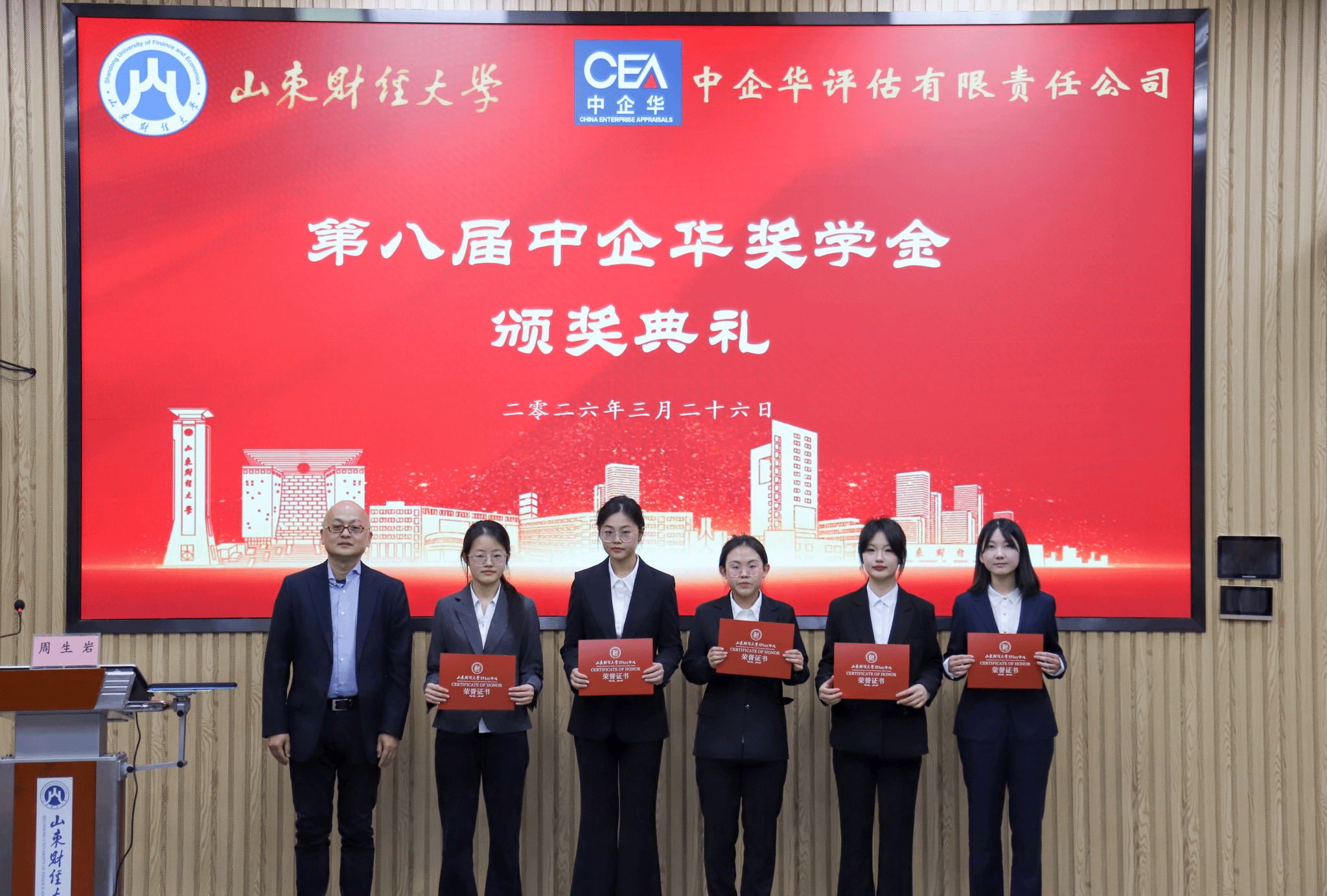 2026年3月26日下午,第八届中企华奖学金颁奖仪式在MG电子 燕山校区Y103隆重召开。MG电子 合作发展处处长徐彬、MG电子 院长葛永波,北京中企华资产评估有限责任公司总裁刘登清、山东分公司总经理尤建宏、执行总经理周生岩、总经理助理戚宪资,MG电子 资产评估系主任葛锐、副主任郭晓日出席颁奖仪式。会议由刘德运主持。