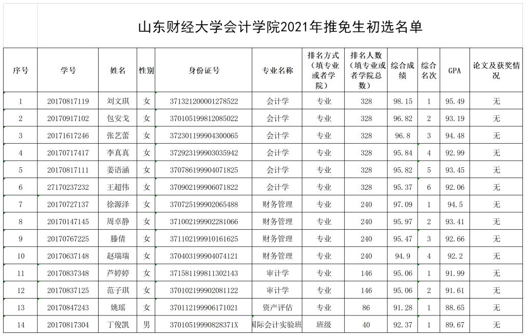 2021年推免生初选名单公示