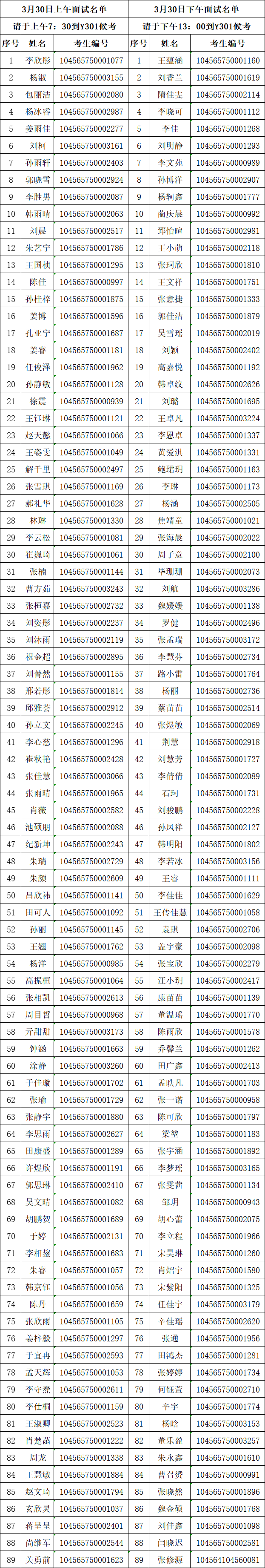 3月30日MG电子 研究生复试面试名单
