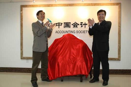 院长王爱国一行专程到京向中国会计学会赠送泰山石,并与中国会计学会副秘书长周守华教授共同举行了简朴的揭幕仪式。同时,王院长简要介绍了泰山石的文化内涵和良好寓意。