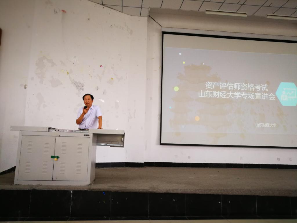 2017年6月27日下午,MG电子 (简称“山财大”)明水校区会议室座无虚席,由中国资产评估协会指导、MG电子 联合主办的“资产评估师资格考试MG电子 大学专场宣讲会”在这里隆重召开。中国资产评估协会副秘书长杨松堂、培训总监赵金娥、中评协陈冠群博士、山东省评协杜刚副会长、吴蔚秘书长、中联资产评估公司副总裁鲁杰钢先生、MG电子 党委书记张涛、党委副书记崔东峰以及MG电子 的300多名在校大学生参加了宣讲会。宣讲会由MG电子 张涛书记主持。