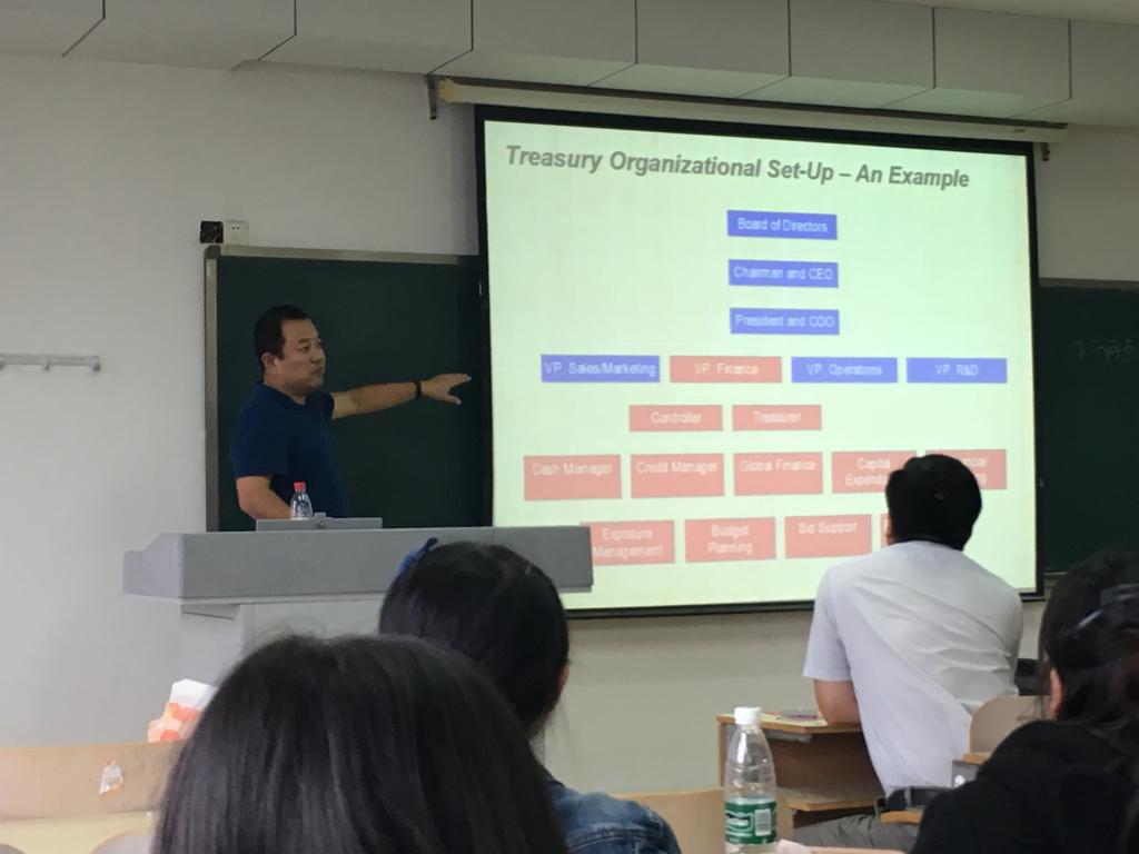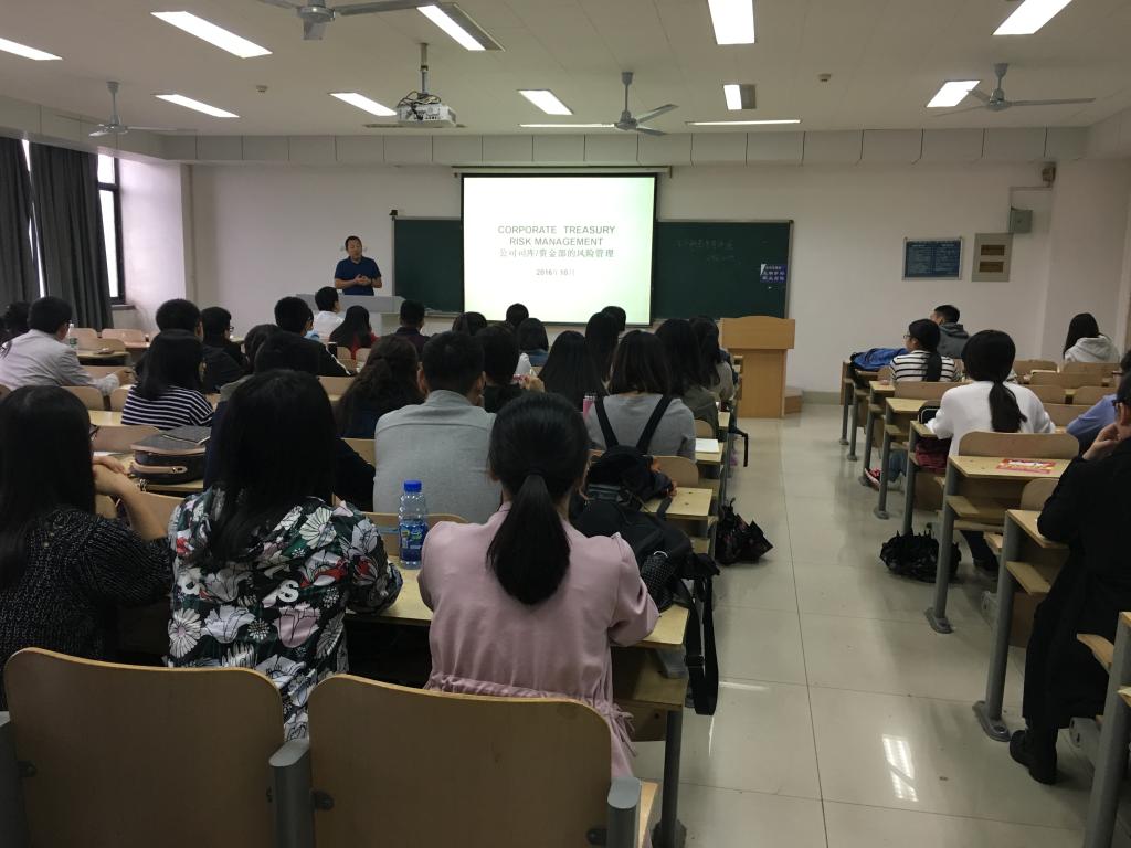 10月15日下午,MG电子 邀请朱远磊博士为2016级全体研究生做了以“跨国公司司库风险管理”为主题的讲座,与同学们深入探讨了司库风险管理及其工作心得。