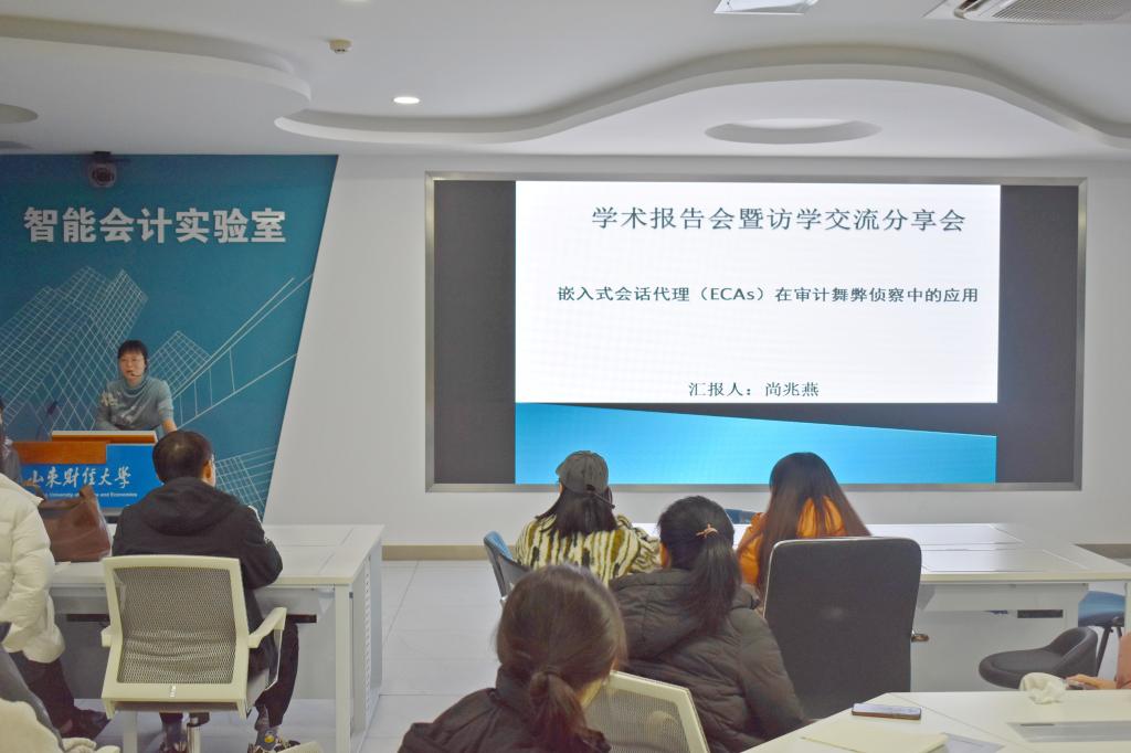 11月30日晚,MG电子 尚兆燕副教授在燕山校区逸夫楼Y320作了题为“嵌入式会话代理(ECAs)在审计舞弊侦察中的应用”的学术报告。报告由MG电子 副院长孙文刚主持,MG电子 2021级部分硕士生聆听了报告。