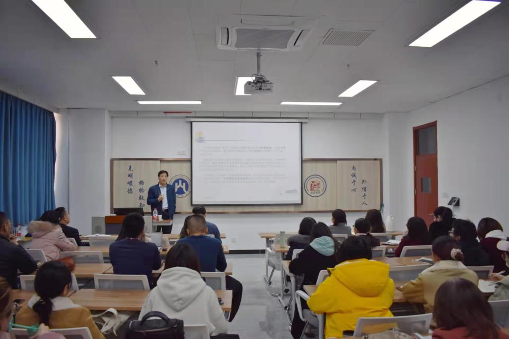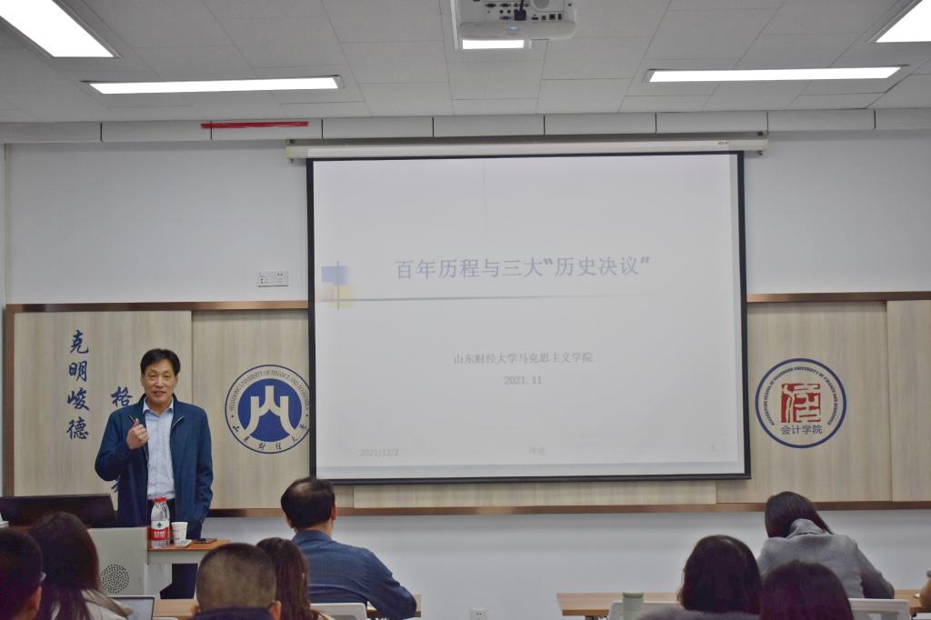 12月2日下午,MG电子 邀请马克思主义学院院长沈大光教授作题为“百年历程与三大历史决议”的专题讲座,讲座由MG电子 党委书记邵文涛主持,MG电子 部分教职工党员和学生党员参加了讲座。