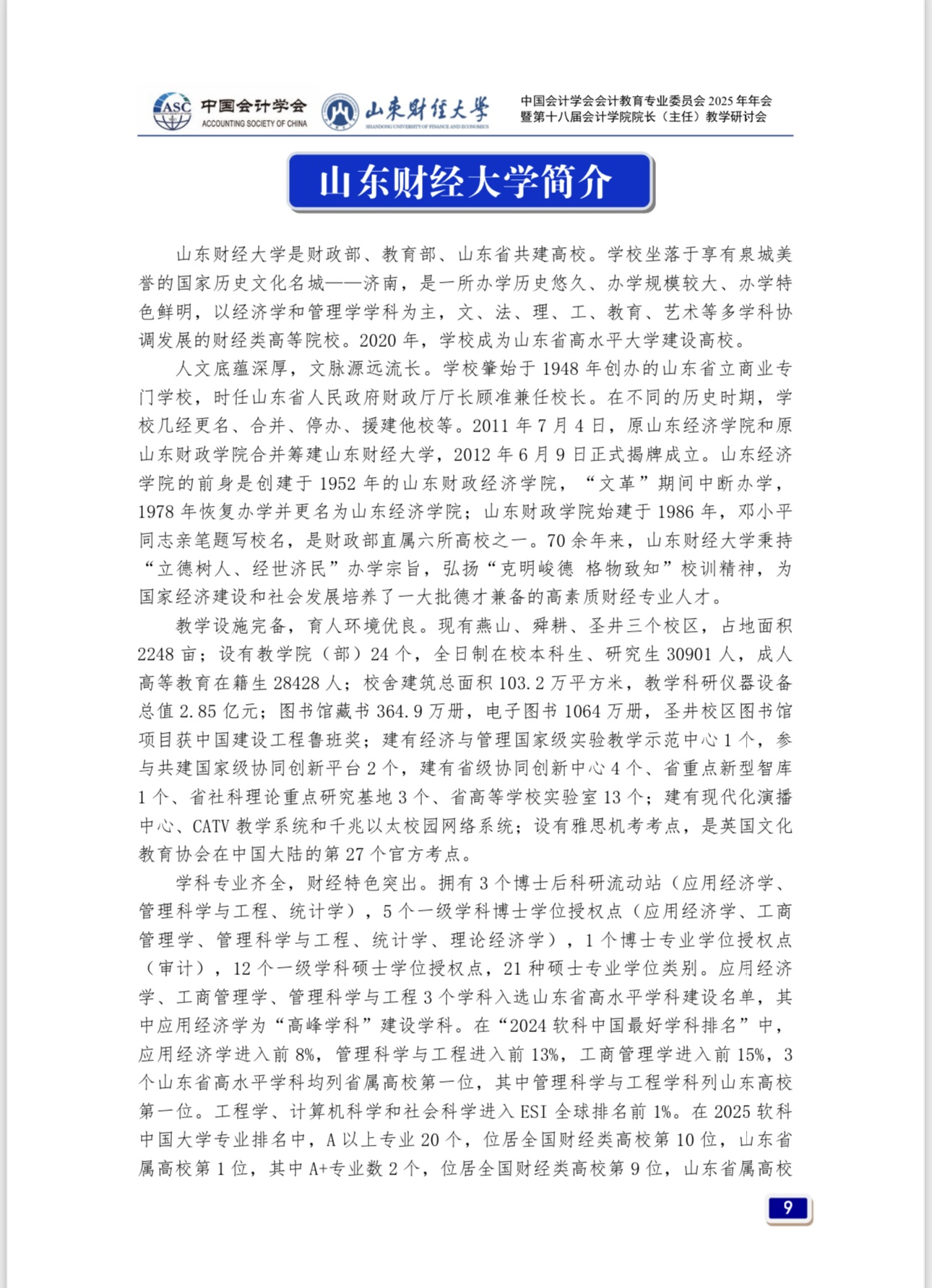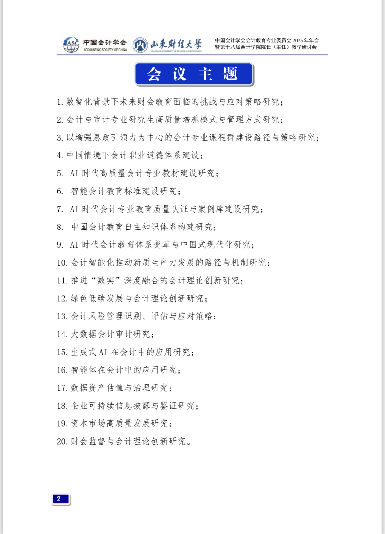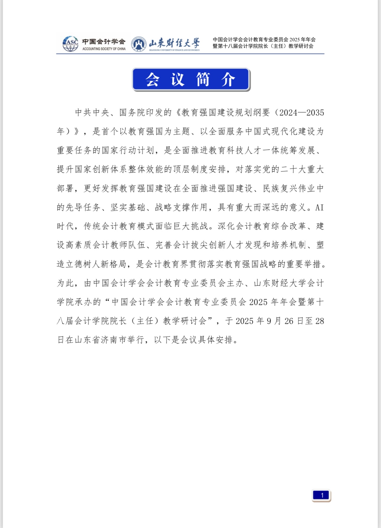 中共中央、国务院印发的《教育强国建设规划纲要(2024—2035 年)》,是首个以教育强国为主题、以全面服务中国式现代化建设为重要任务的国家行动计划,是全面推进教育科技人才一体统筹发展、提升国家创新体系整体效能的顶层制度安排,对落实党的二十大重大部署,更好发挥教育强国建设在全面推进强国建设、民族复兴伟业中的先导任务、坚实基础、战略支撑作用,具有重大而深远的意义。AI时代,传统会计教育模式面临巨大挑战。深化会计教育综合改革、建设高素质会计教师队伍、完善会计拔尖创新人才发现和培养机制、塑造立德树人新格局,是会计教育界贯彻落实教育强国战略的重要举措。为此,由中国会计学会会计教育专业委员会主办、MG电子 承办的“中国会计学会会计教育专业委员会2025年年会暨第十八届MG电子 院长(主任)教学研讨会”,于2025年9月26日至28日在山东省济南市举行,以下是会议具体安排。