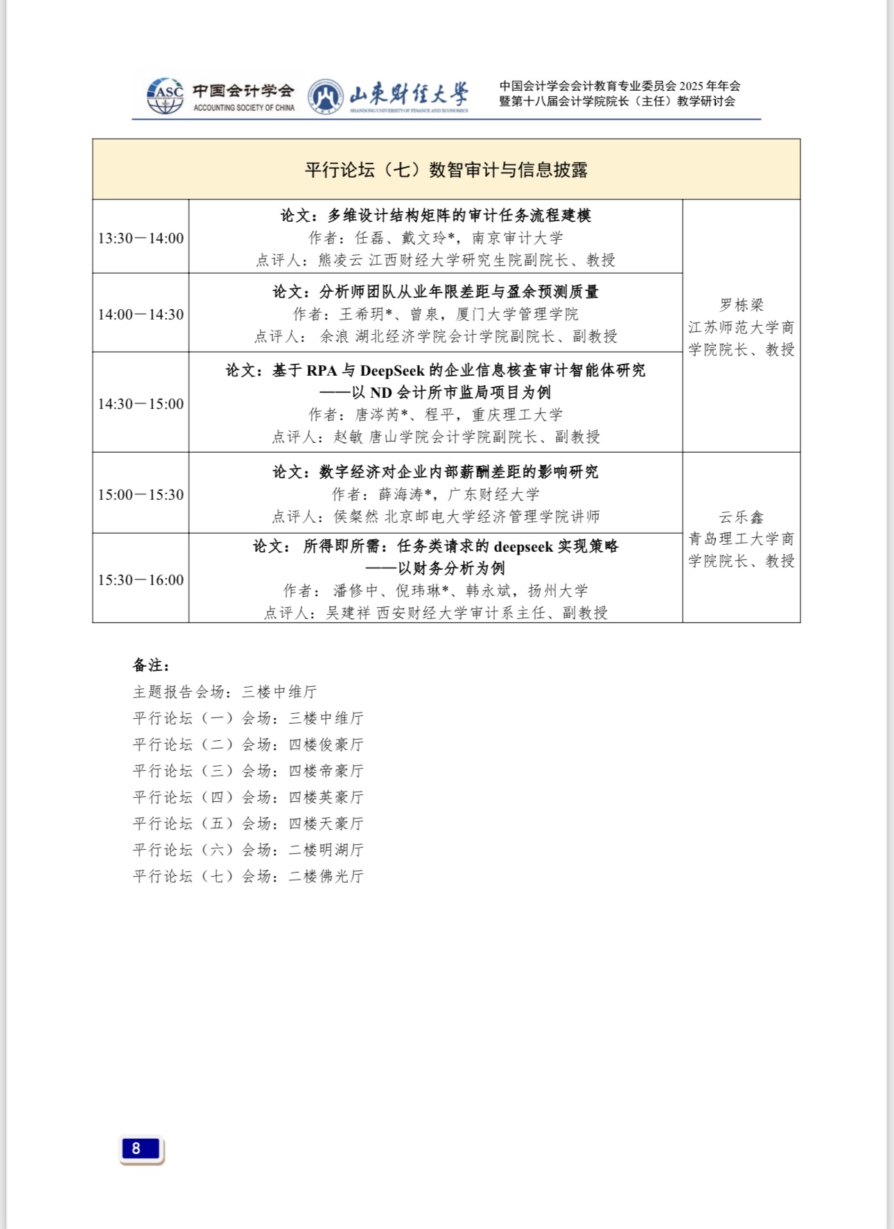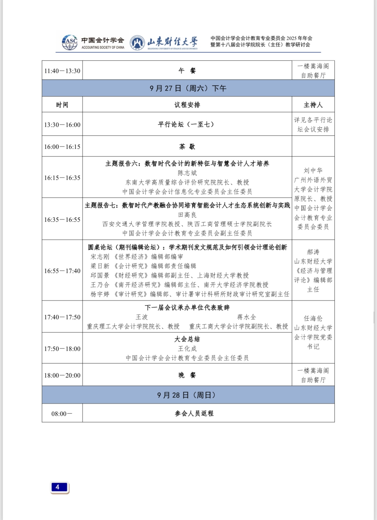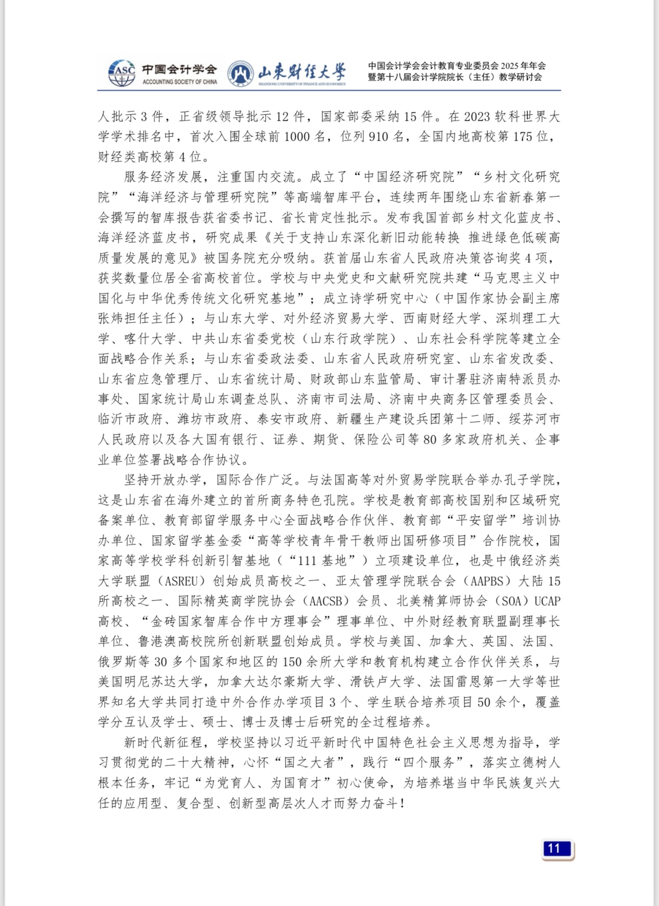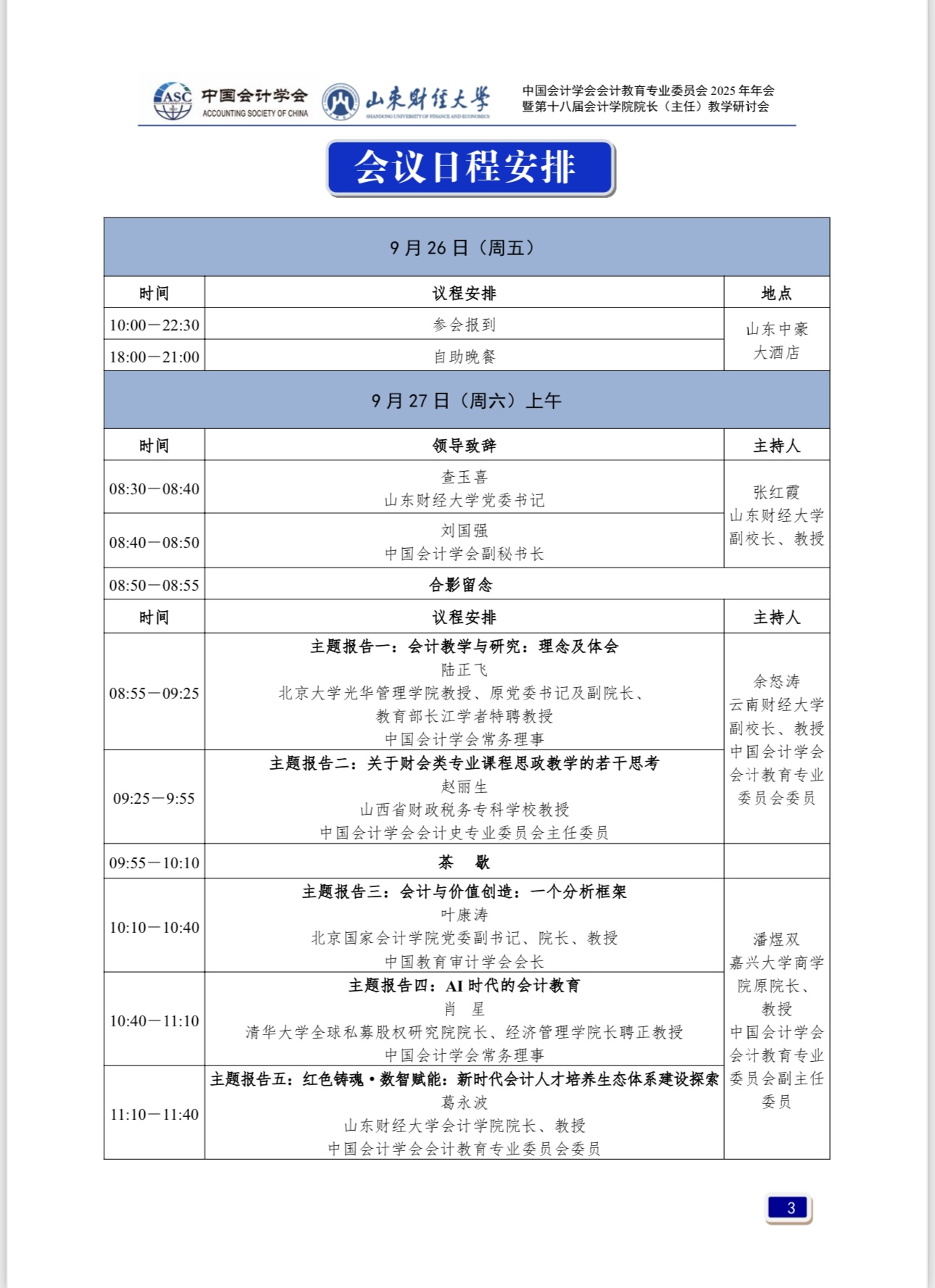 中共中央、国务院印发的《教育强国建设规划纲要(2024—2035 年)》,是首个以教育强国为主题、以全面服务中国式现代化建设为重要任务的国家行动计划,是全面推进教育科技人才一体统筹发展、提升国家创新体系整体效能的顶层制度安排,对落实党的二十大重大部署,更好发挥教育强国建设在全面推进强国建设、民族复兴伟业中的先导任务、坚实基础、战略支撑作用,具有重大而深远的意义。AI时代,传统会计教育模式面临巨大挑战。深化会计教育综合改革、建设高素质会计教师队伍、完善会计拔尖创新人才发现和培养机制、塑造立德树人新格局,是会计教育界贯彻落实教育强国战略的重要举措。为此,由中国会计学会会计教育专业委员会主办、MG电子 承办的“中国会计学会会计教育专业委员会2025年年会暨第十八届MG电子 院长(主任)教学研讨会”,于2025年9月26日至28日在山东省济南市举行,以下是会议具体安排。