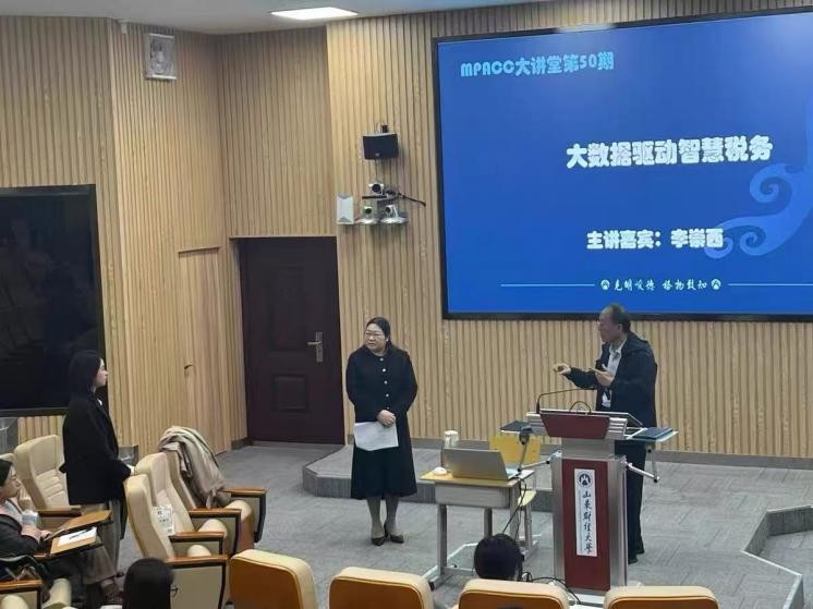 为助力师生把握税收征管智慧化转型趋势,10月18日上午,MG电子 (MPAcc中心)特邀智慧税务、税收大数据与风险管理领域的资深专家、原国家税务总局山东省税务局税收大数据和风险管理局局长、二级巡视员李崇西开展了题为《大数据驱动智慧税务》的专题讲座。此次讲座采用线上线下相结合的方式,由MPAcc中心副主任丁鸿雁教授主持,2024级、2025级会计专业硕士研究生和MG电子 (MPAcc中心)部分教师参加了讲座。
