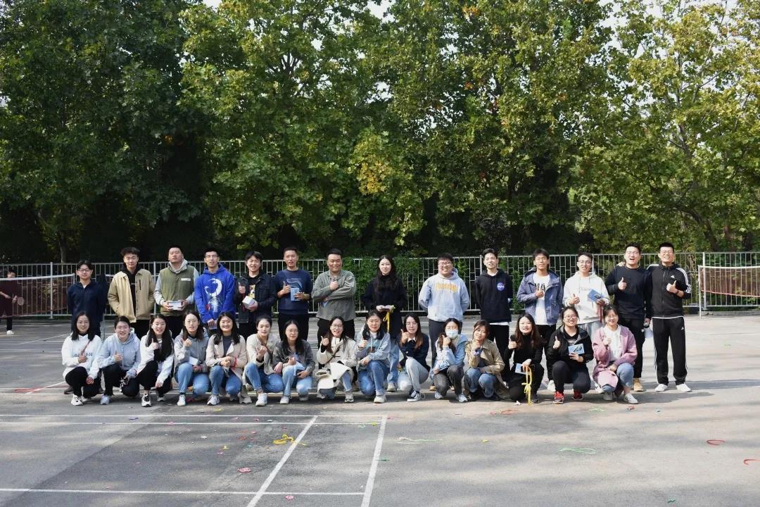最后进行的是有趣的团队游戏“八人九足并排跑”,游戏规则是组内成员站成一排,相邻同学的腿绑在一起,站在起跑线上,做好准备,待发令员发令,即开始比赛,当到达终点时,裁判员吹哨,用时最短的队伍胜出。有些组因默契度没有发挥到极致,导致走不动,可他们不气馁,调整好状态后再次喊起了口号,整齐地迈向终点。除了令人捧腹的画面,更多的是队友间互相照顾、并肩作战的温暖瞬间。在这一个个的团建游戏中,同学彼此之间的默契度也在悄然上升。