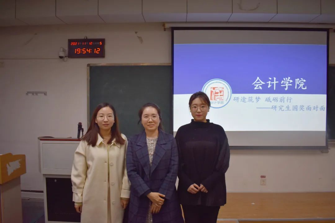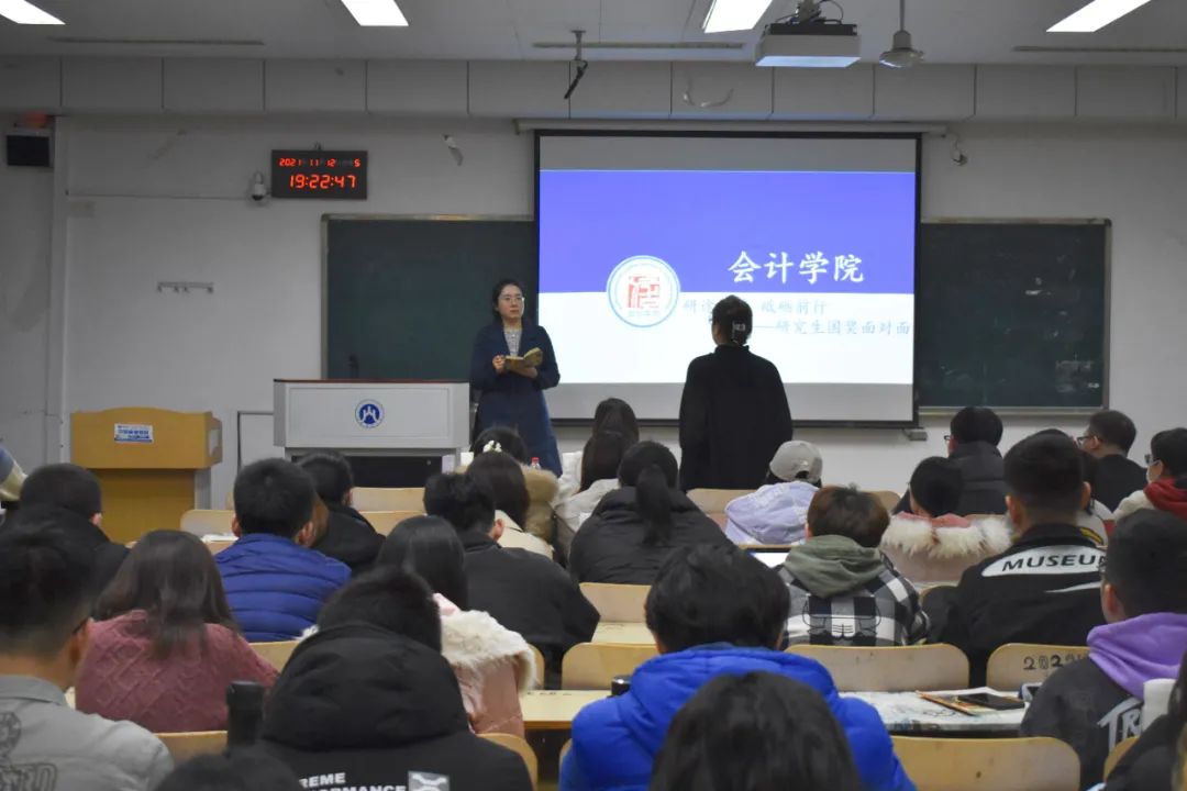 11月12日晚,MG电子 2021年“研究生国奖面对面”活动在燕山校区逸夫楼403教室举行,会计学系主任王斌副教授作为指导专家应邀出席了本次活动。MG电子 2021年国奖获得者亓哲和王晨宇作为主讲人,向参加活动的2021级部分研究生分享了她们研究生学习生活中的精彩经历与宝贵经验。