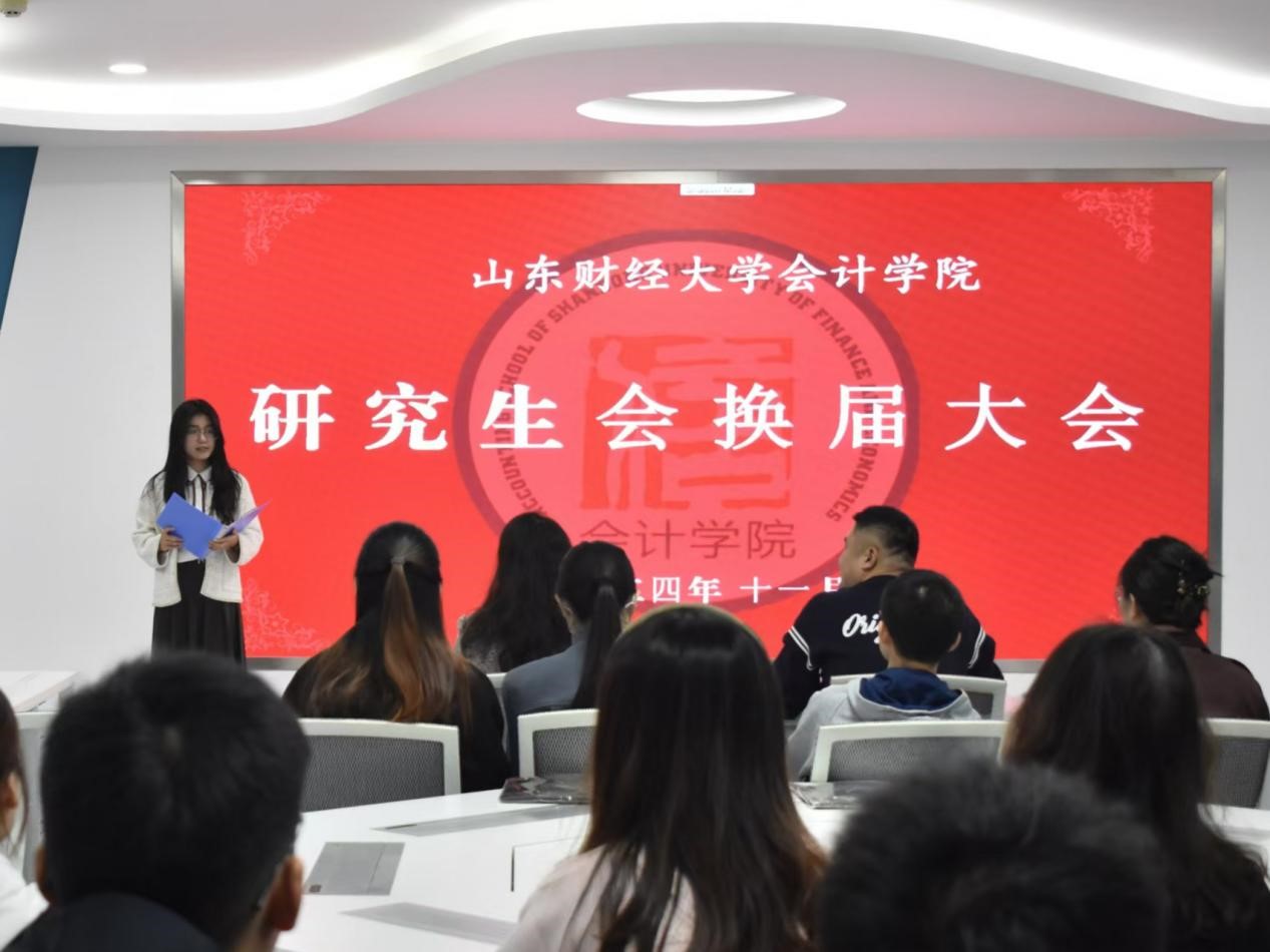 11月1日上午,MG电子 第十四届研究生会换届大会在燕山校区逸夫楼320教室成功举行。MG电子 党委副书记郑大伟、研究生辅导员史岩出席大会,第十三届研究生会主席团、第十四届研究生会主席团、部长以及干事代表参加。会议由2024级会计学硕班魏凤楠主持。
