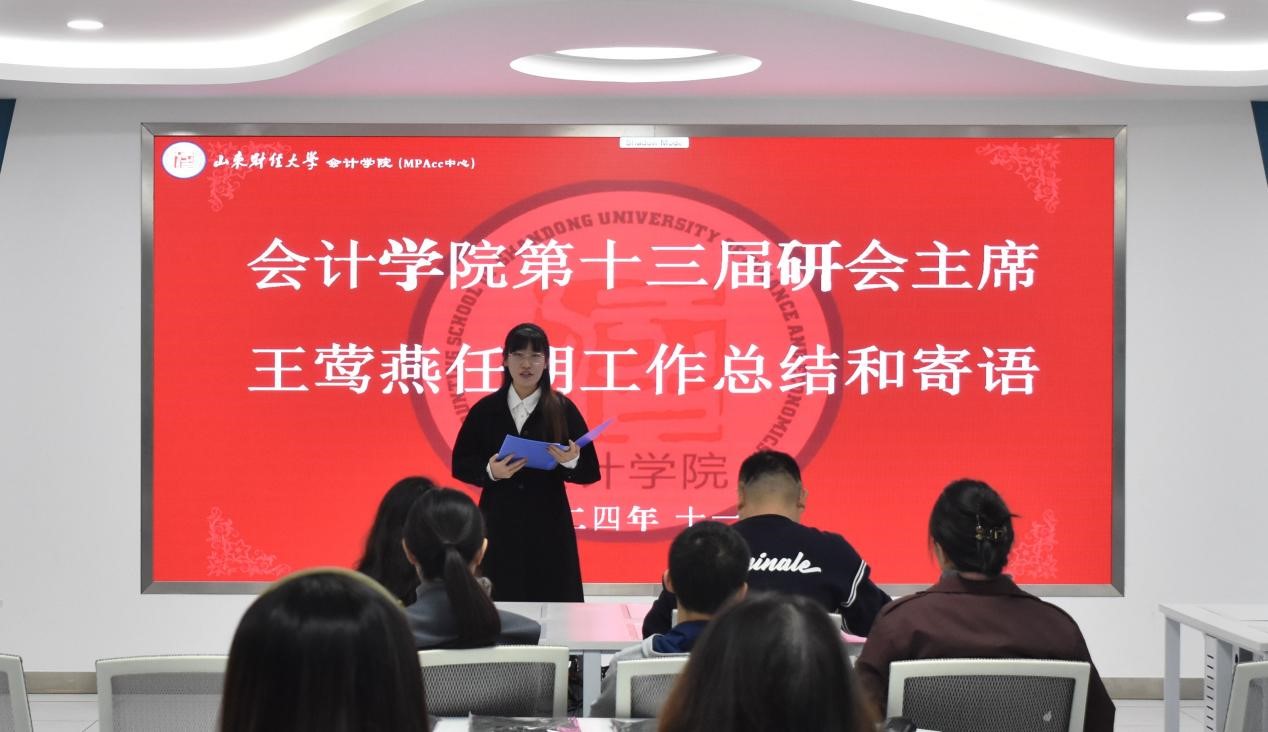 接着,第十三届研究生会主席王莺燕进行任期工作总结。她肯定了过去一年里研究生会各部门所举办的各项活动与取得的成果,鼓励新一届研究生会成员能够不忘初心、团结合作,以更加饱满的热情和更加务实的态度,为同学、为老师、为学院的发展尽一份力,使新一届研究生会绽放出更加夺目的光彩。