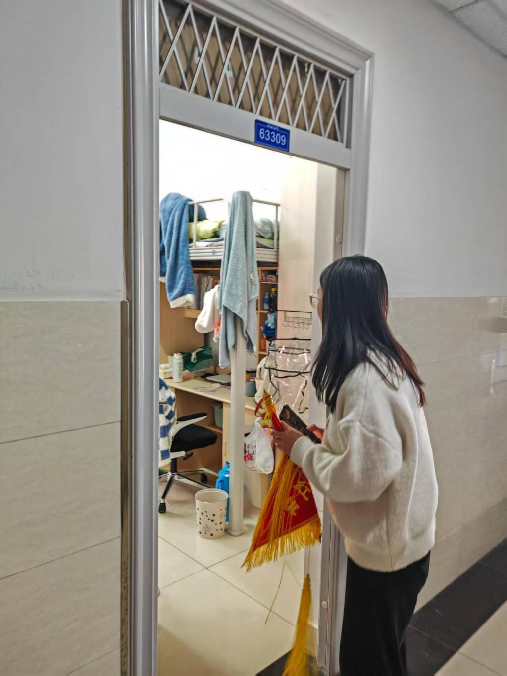 学院辅导员带领学院学生会成员、各班卫生委员开展了宿舍卫生检查,重点对宿舍内务整理、垃圾清理、物品摆放及公共区域卫生状况进行检查。在检查过程中,特别关注了床铺整洁度、地面清洁程度、卫生间卫生状况以及阳台物品堆放等问题。